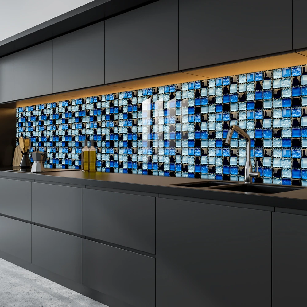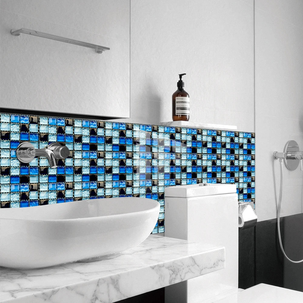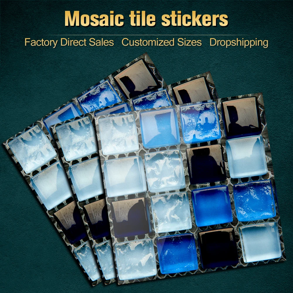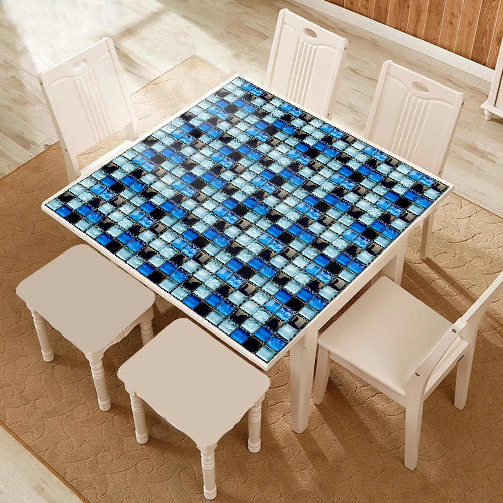 10 pçs/set Liso Azul Filme Duro de Cristal Mosaico Azulejos Etiqueta Living Room Decor Wall Stickers Peel & Vara Removível PVC Papel De Parede