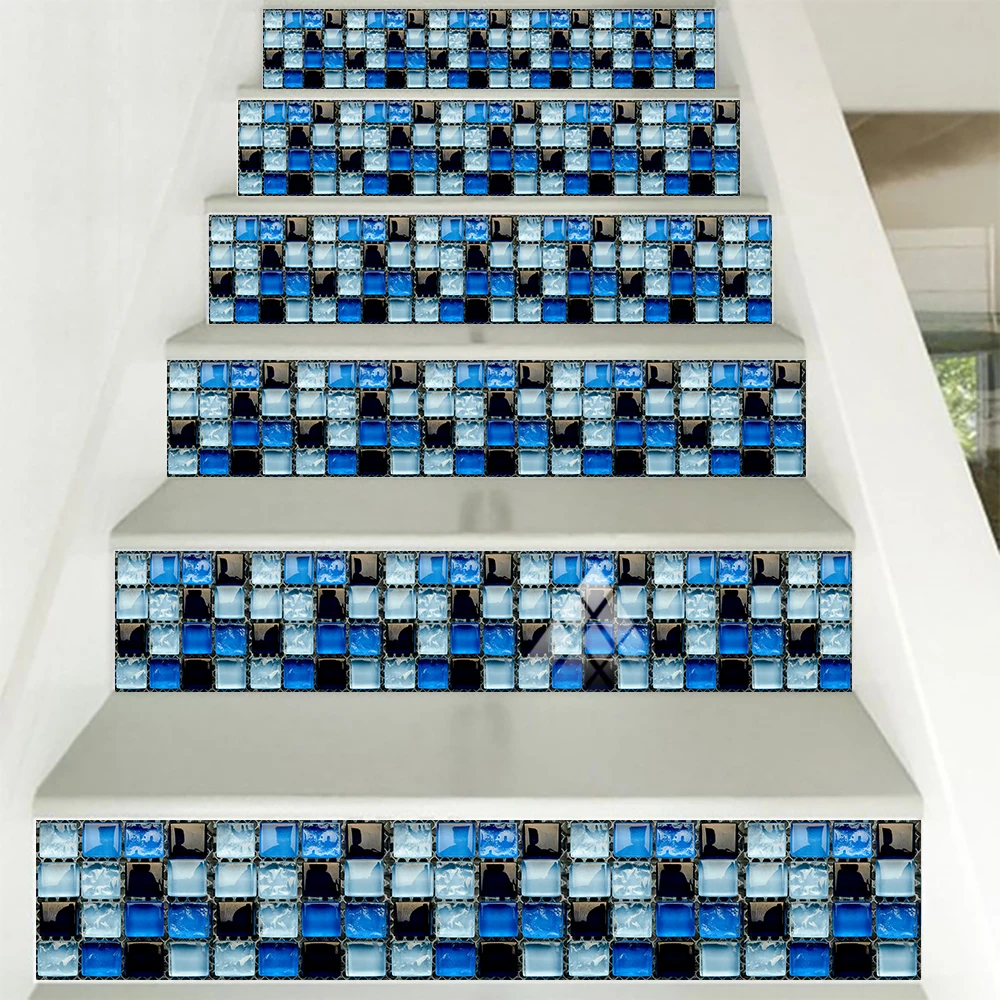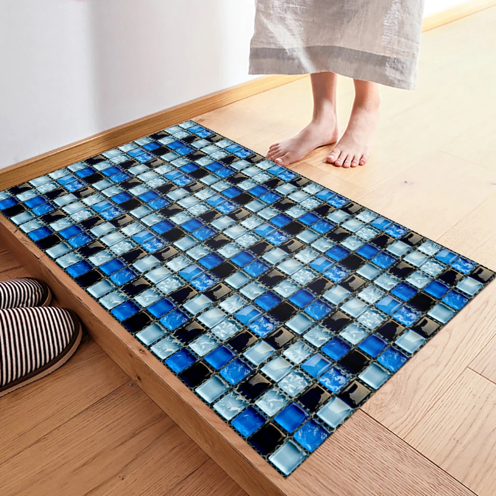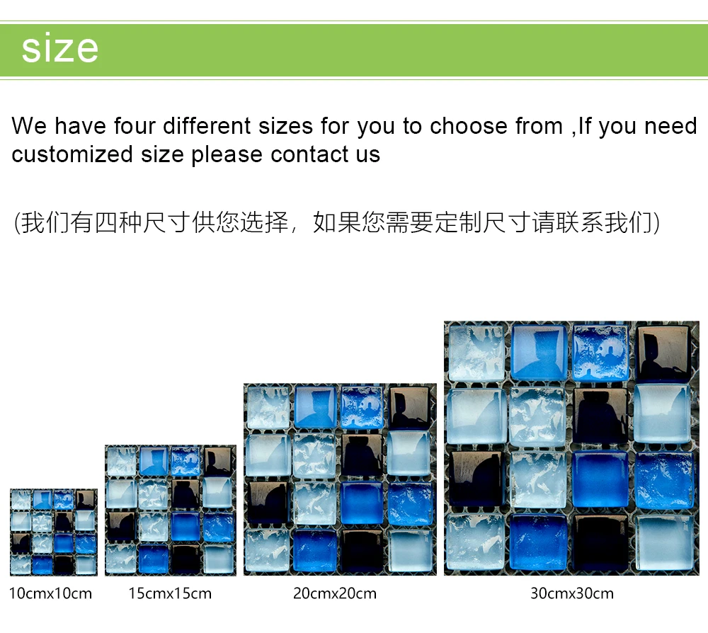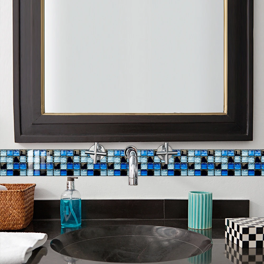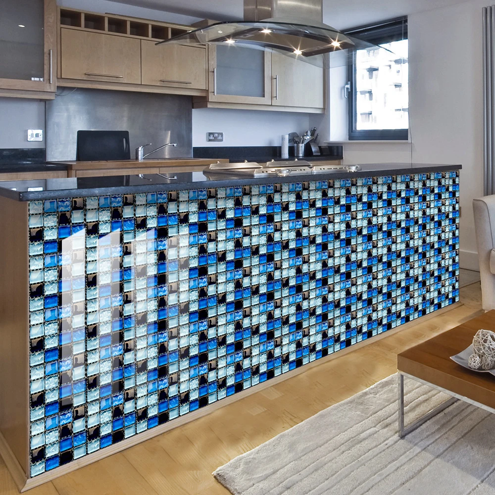10 pçs/set Liso Azul Filme Duro de Cristal Mosaico Azulejos Etiqueta Living Room Decor Wall Stickers Peel & Vara Removível PVC Papel De Parede