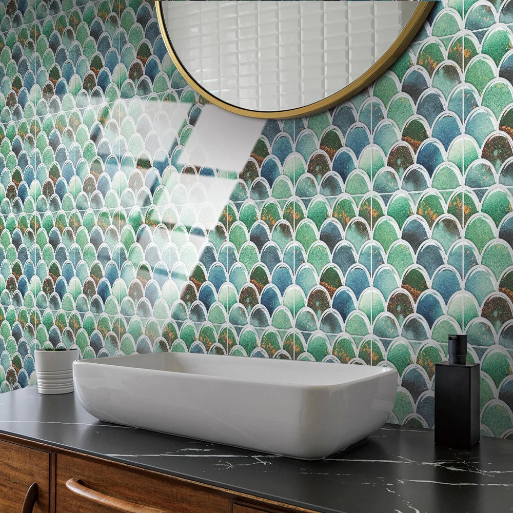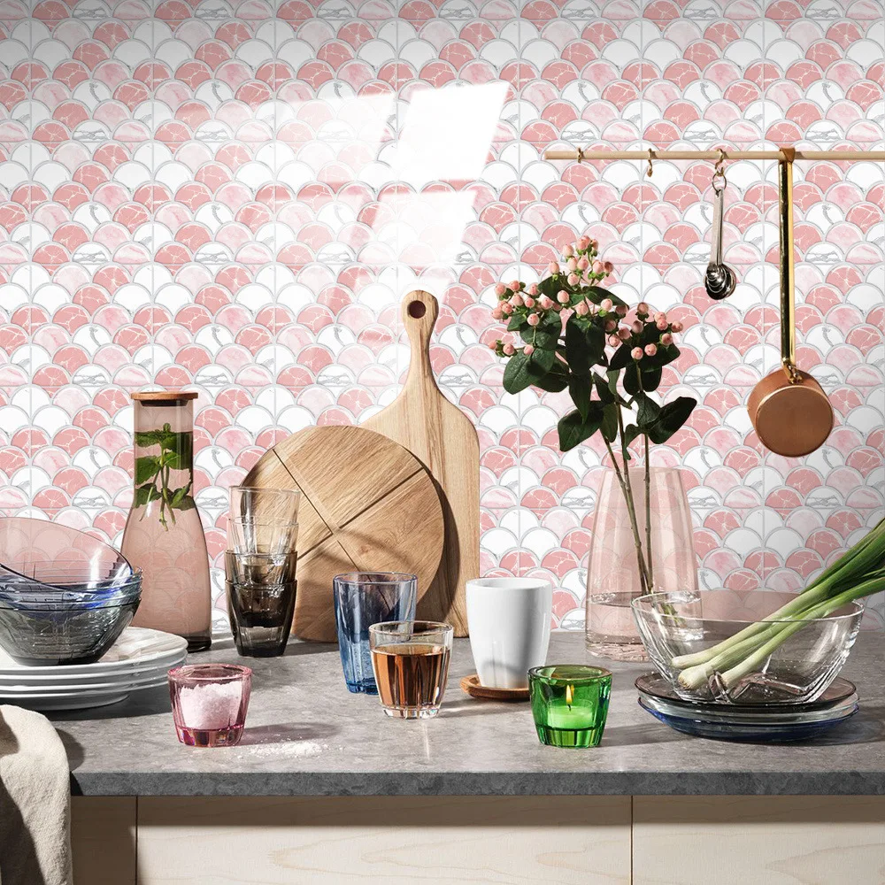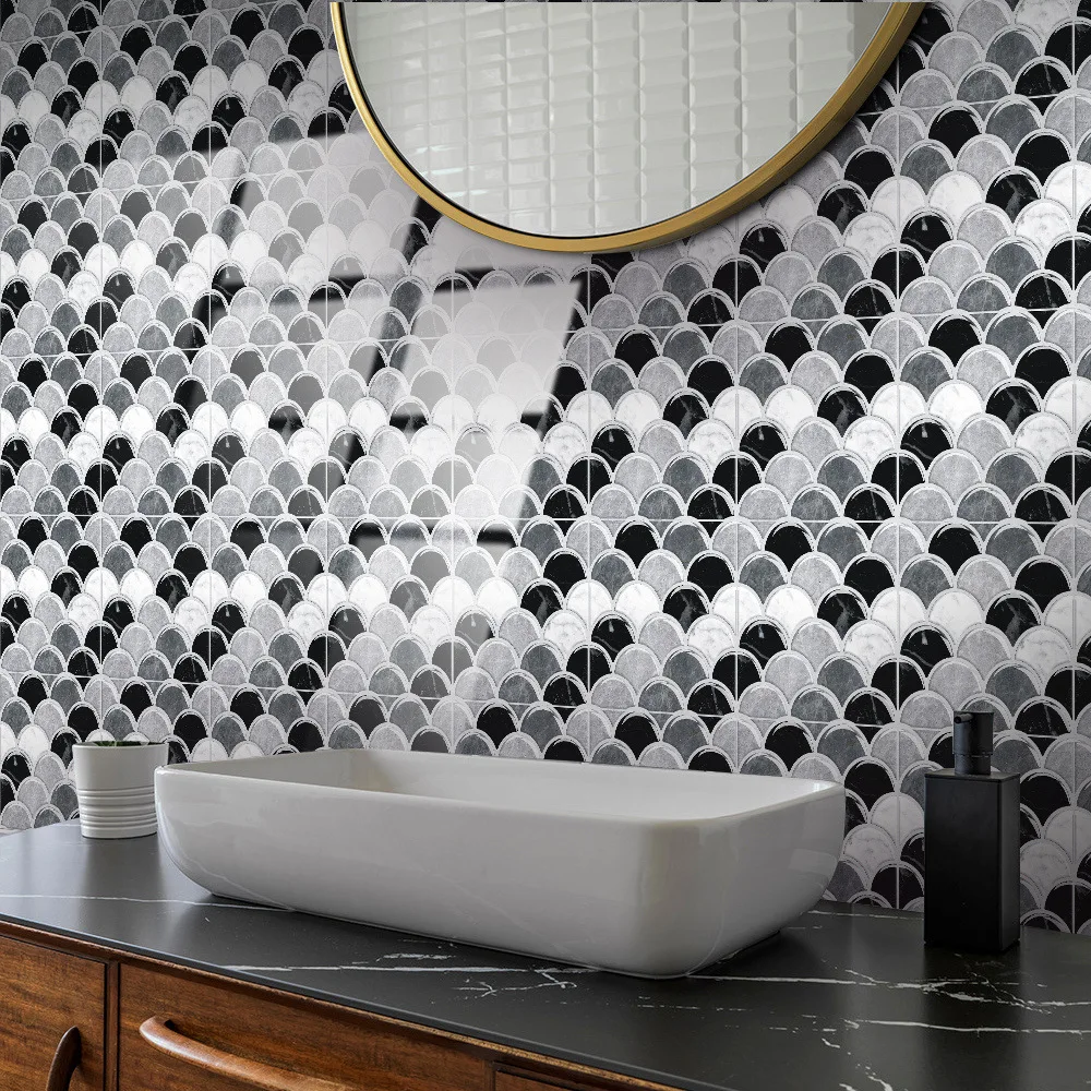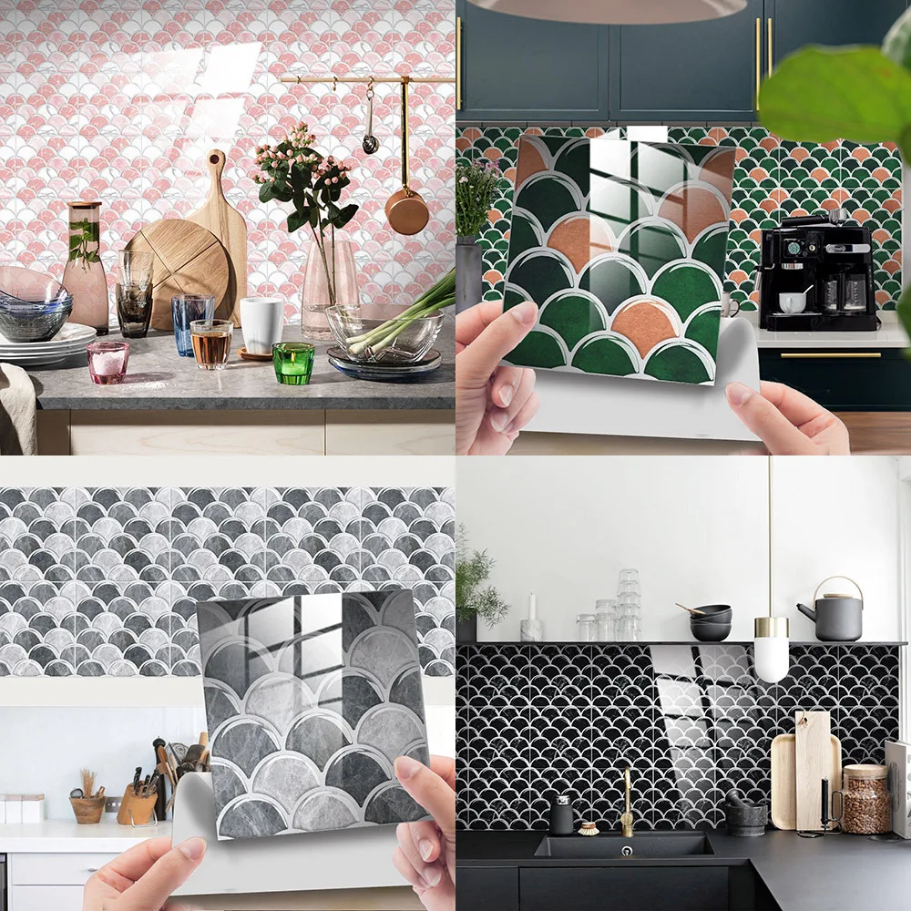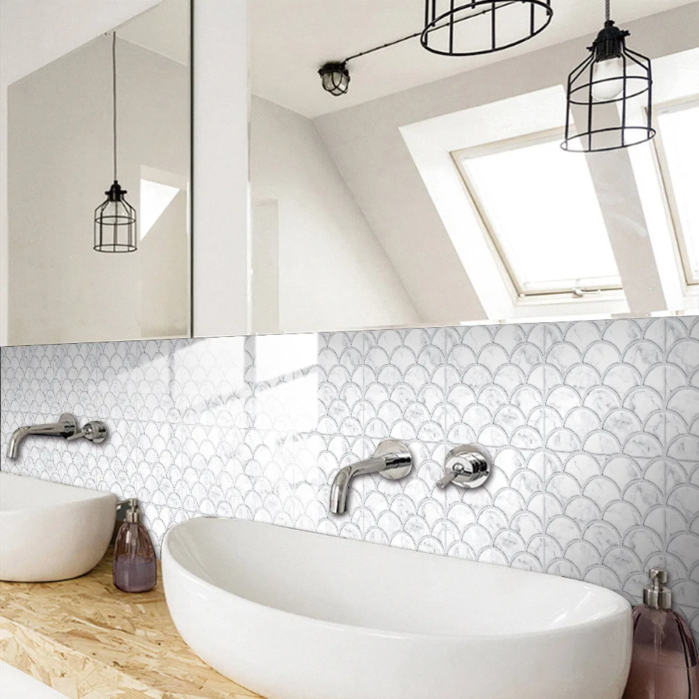 10 unidades/pacote retro padrão de mármore imitação epóxi cristal filme peixe escala 3d telha visual adesivo decoração renovação móveis
