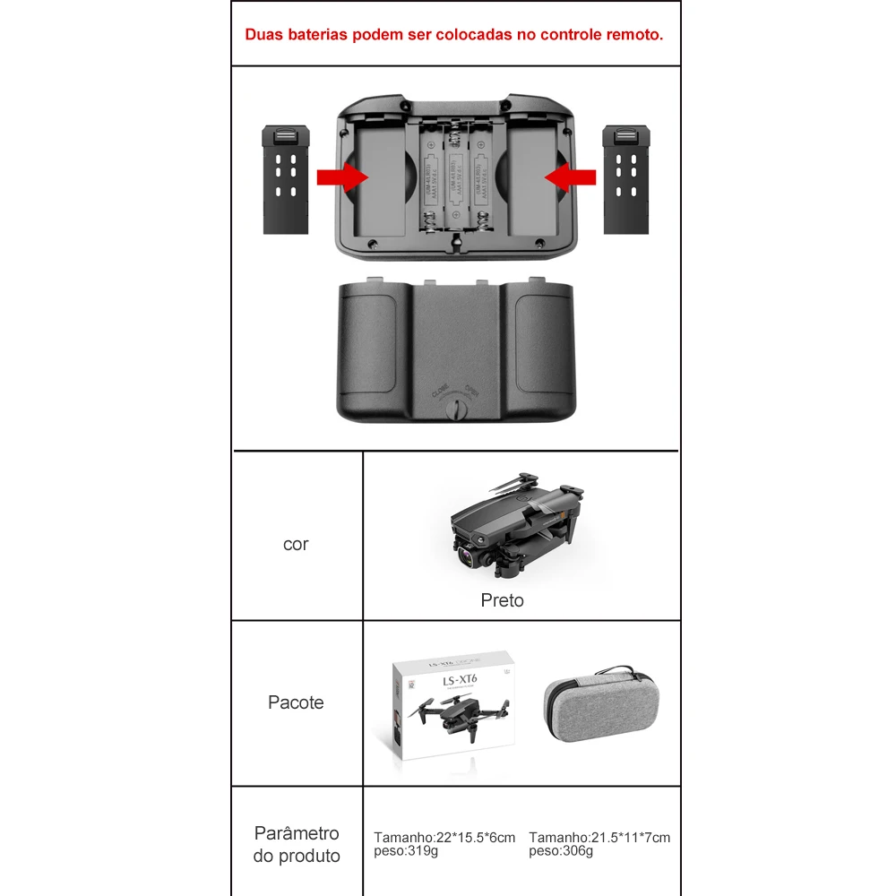 Funções: para cima/baixo, frente/trás, esquerda/virar à direita, lado de vôo, luzes LED, modo headless, one-chave de retorno automático, modo de altitude hold, wi-fi FPV (dual lens com lente dupla função de comu