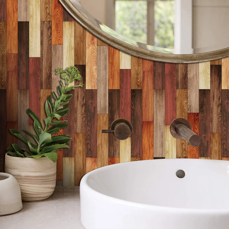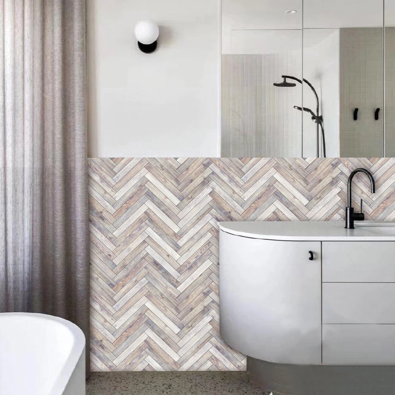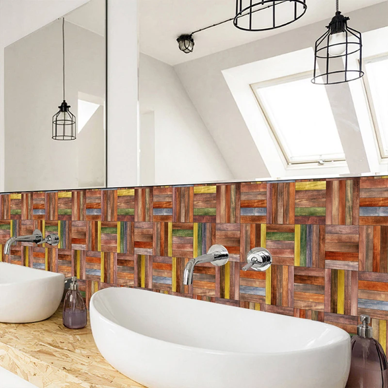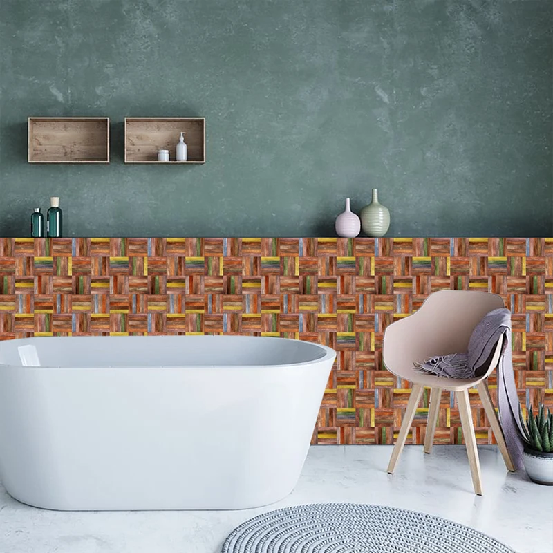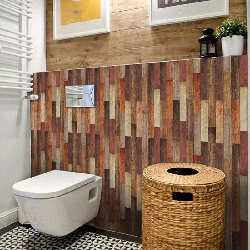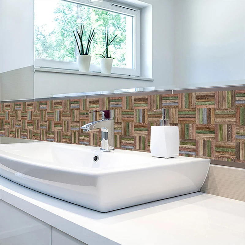 20pc pvc à prova dwaterproof água telha de grão de madeira adesivo cozinha banheiro auto adesivo parede sala estar quarto papel de parede decoração da sua casa