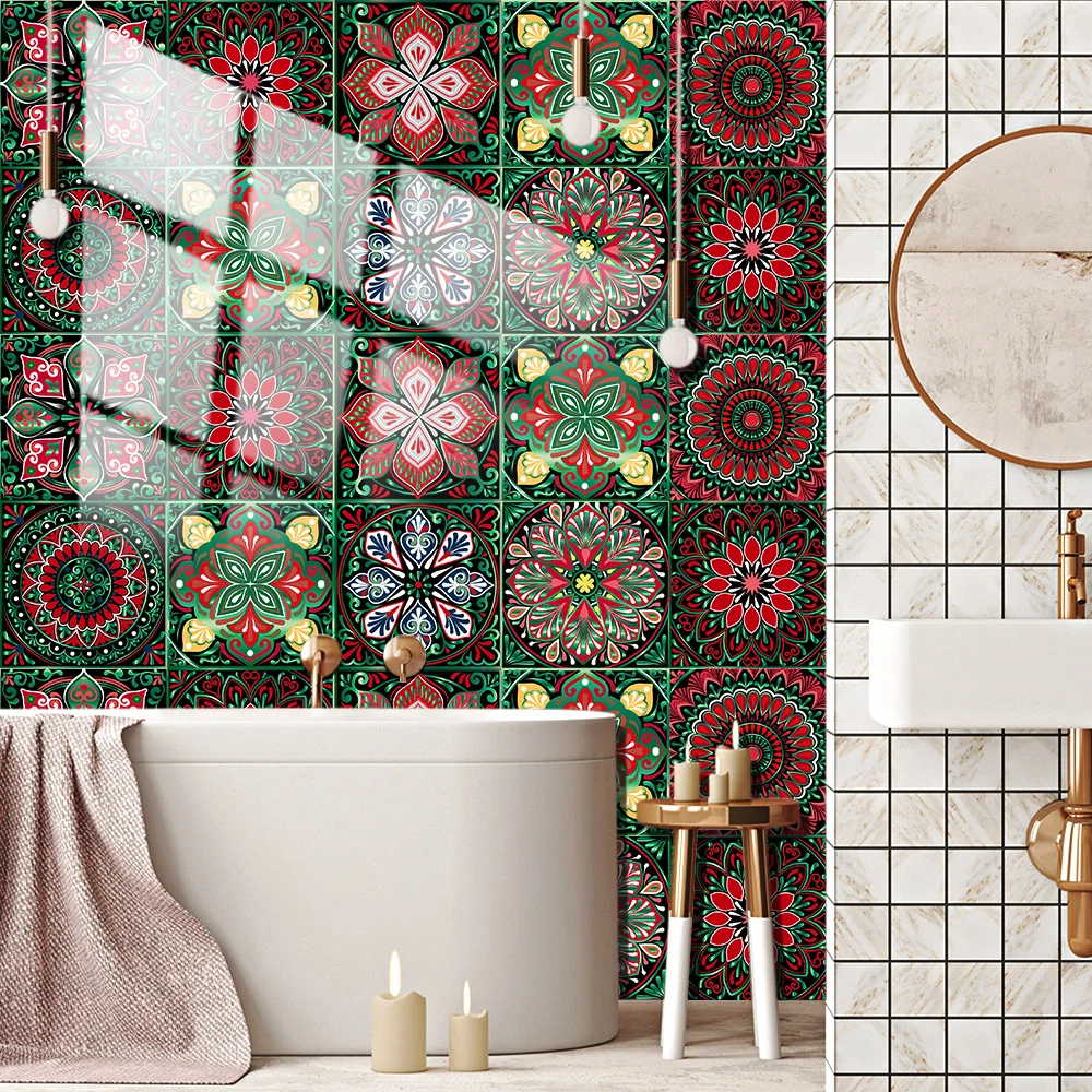 4 tamanhos de cor escura mandala estilo cristal duro filme telhas adesivo quarto decoração da sua casa decalques de parede peel & vara removível pvc papel de parede