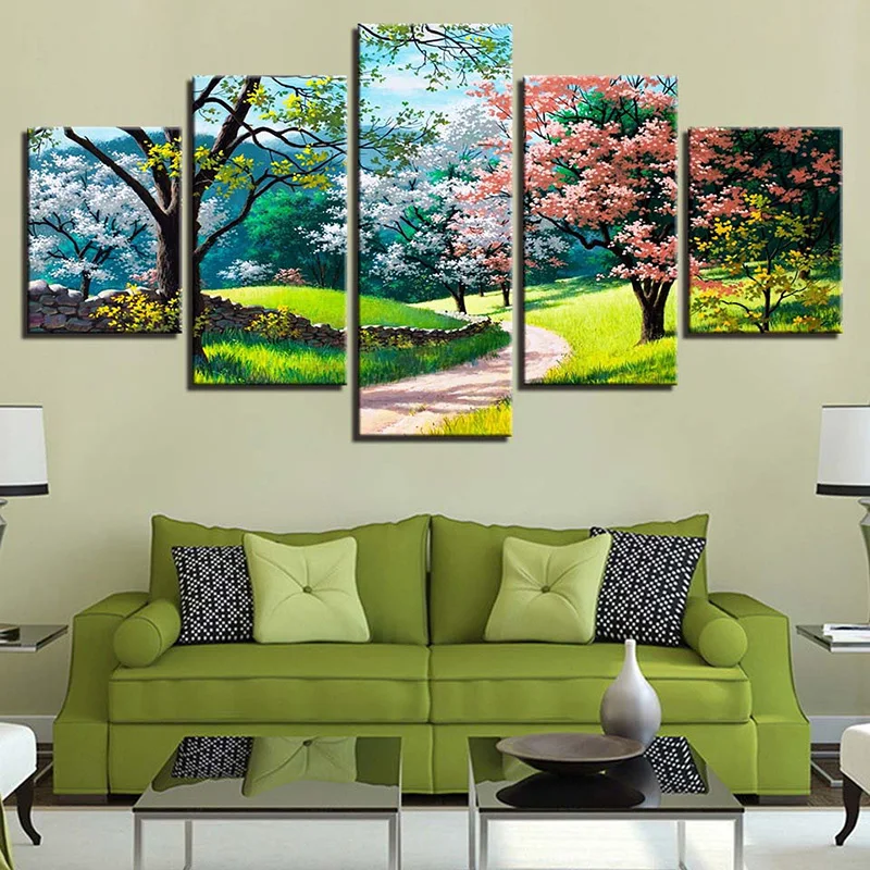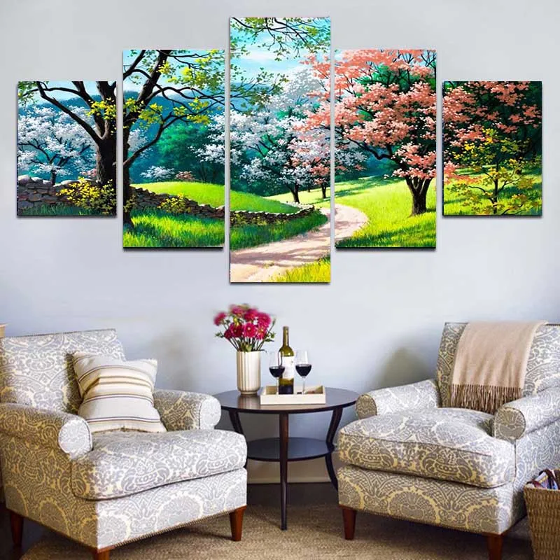 5 painéis de flor árvore primavera paisagem pintura da lona paisagem cartazes e impressões decoração para casa imagem da parede sala estar sem moldura