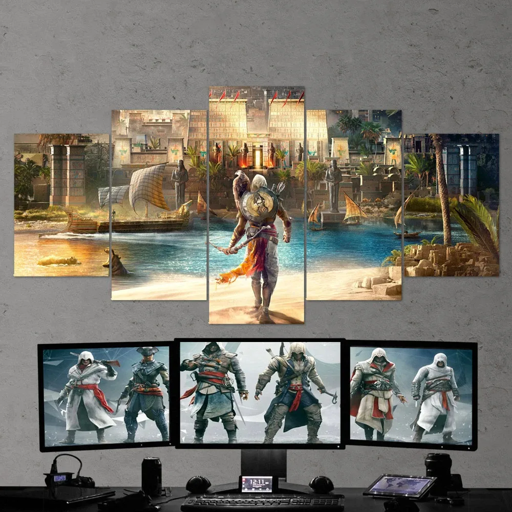 5 peças da arte da parede pintura em tela assassino jogo poster moderno casa decoração fotos modular sala de estar quarto quadro