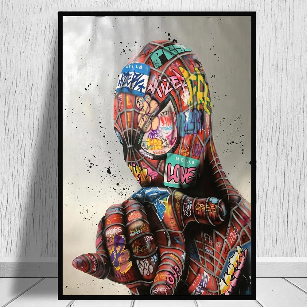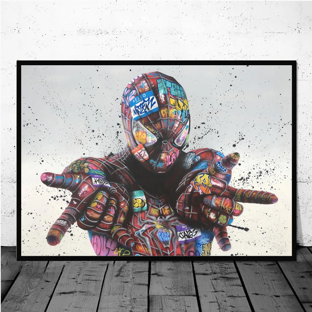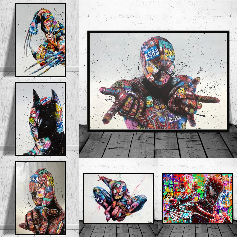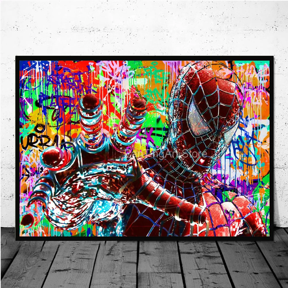Abstracto graffiti homem-aranha colorido quadros em tela na parede arte marvel decorativo poster imagens para sala de estar