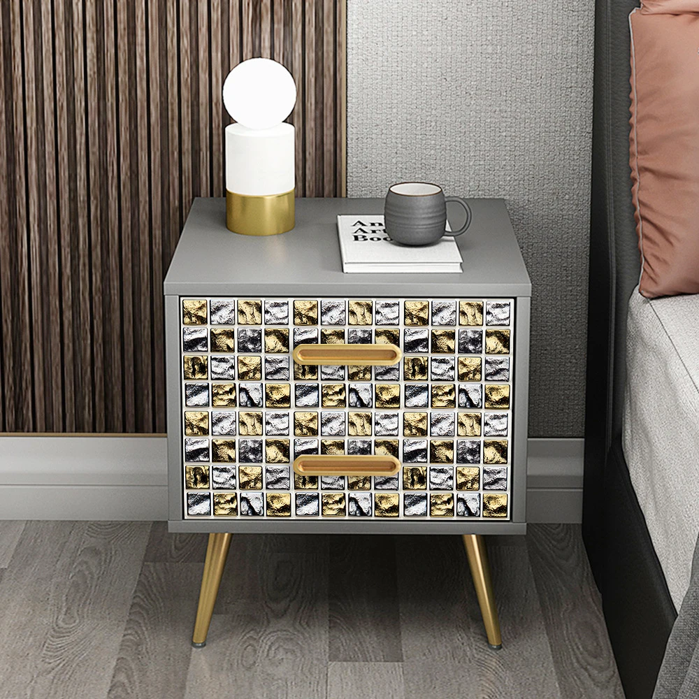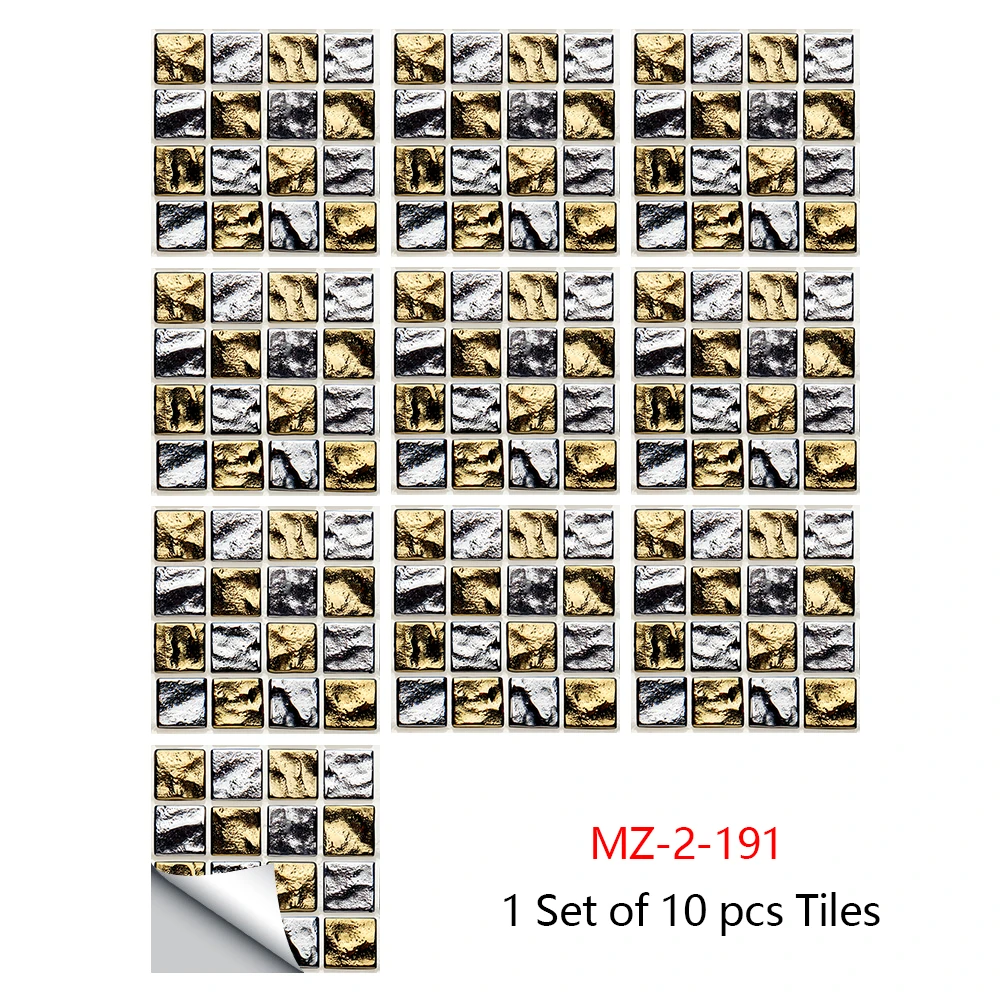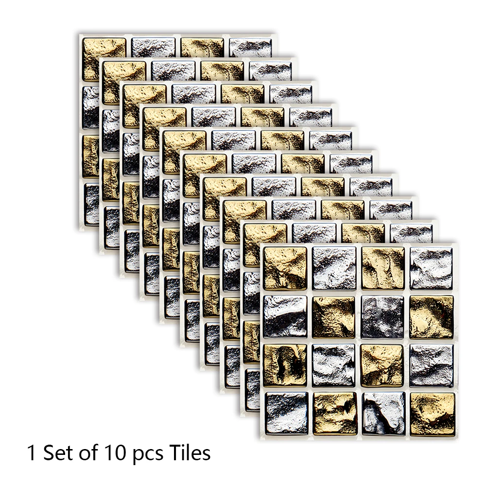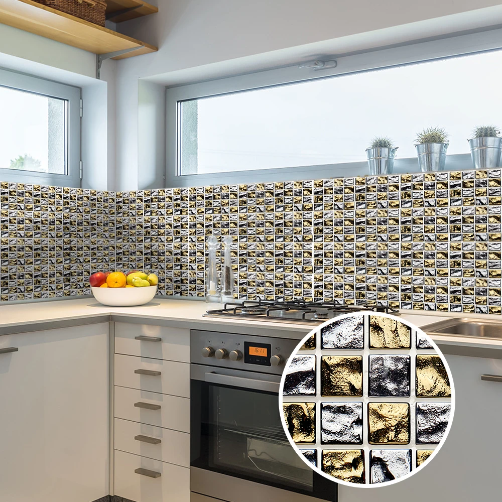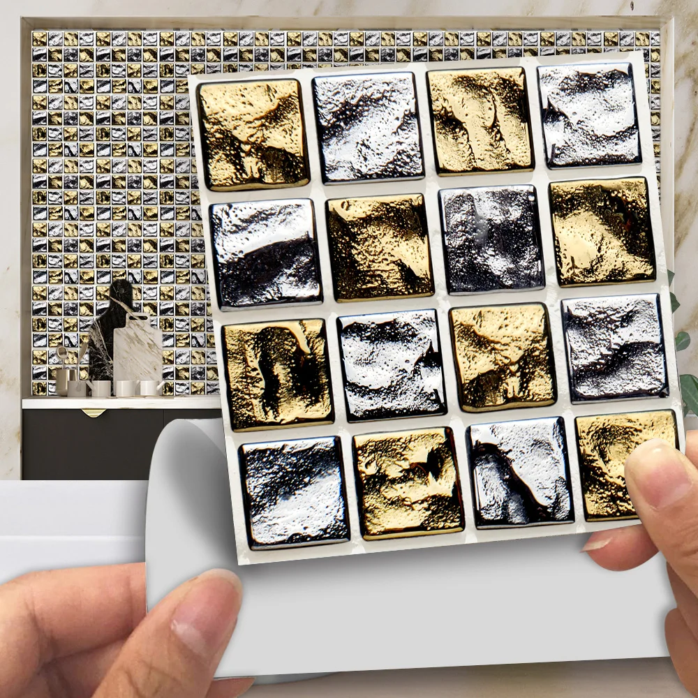 Adesivo de parede de azulejo rígido em mosaico plano de estilo metálico apenas efeitos 3d.
