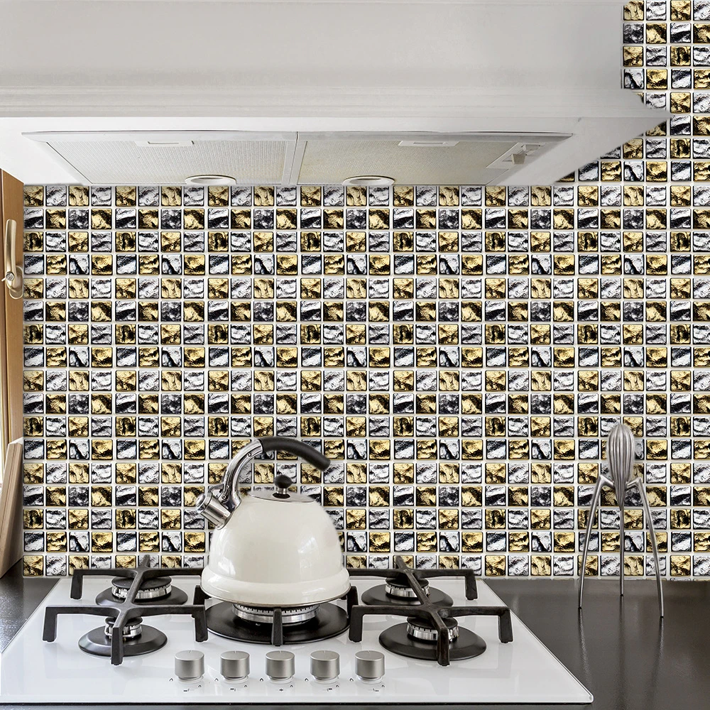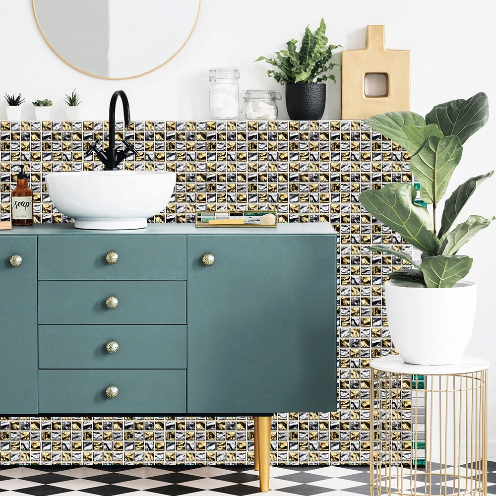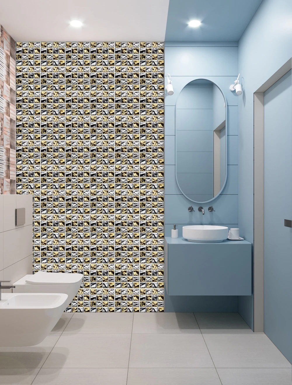 Adesivo de parede com mosaico em metal, arte de renovação para banheiro, geladeira, mural, casca e vinil