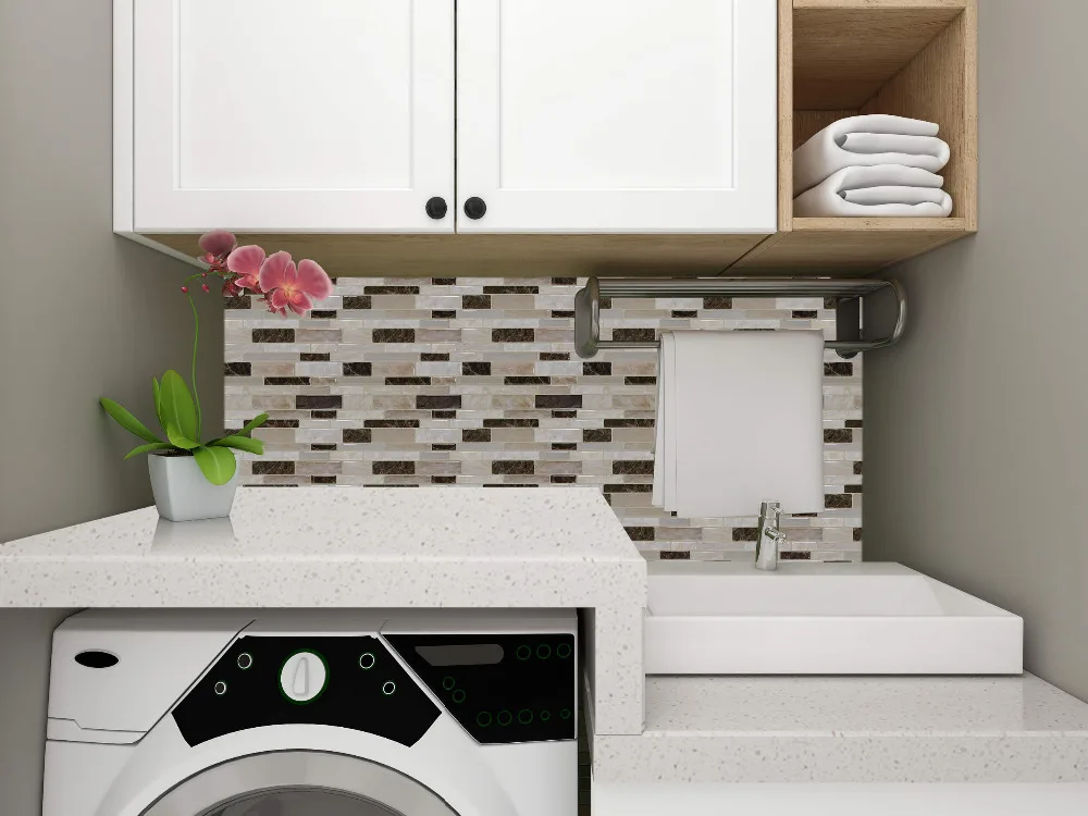 As telhas podem ser facilmente instaladas sobre os painéis existentes ou em uma superfície lisa. especialmente projetadas para salpicos de cozinha e backsplashes de banheiro, as telhas são resistentes ao calor de fogões e umidade dos banheiros.