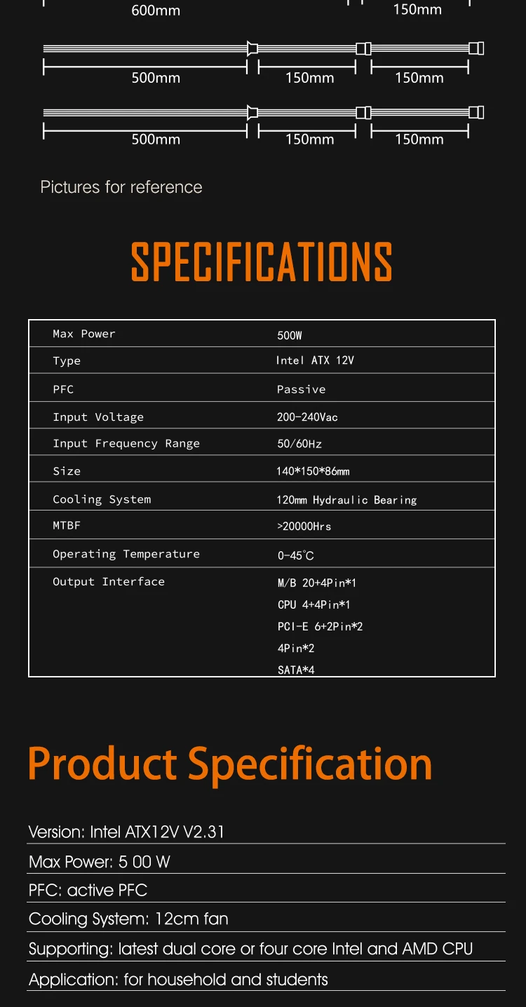 Max 500W Fonte De Alimentação PSU PFC Ventilador Silencioso ATX 24pin 12V Computador PC SATA Gaming PC Fonte De Alimentação Para Computador Intel AMD Aleatória