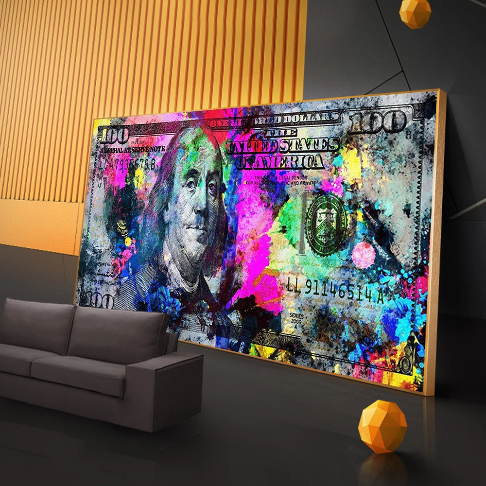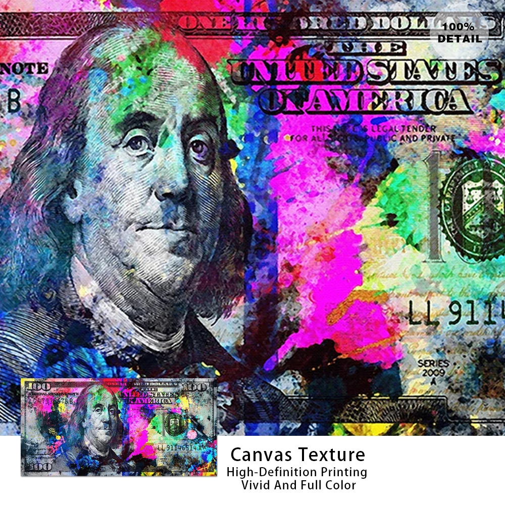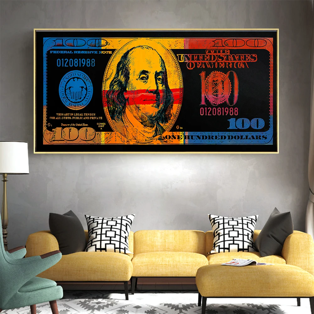 Arte da parede ouro moderno popular colorido cem dinheiro pintura em tela quadro rua arte abstrata cartaz da parede imagem casa decoração