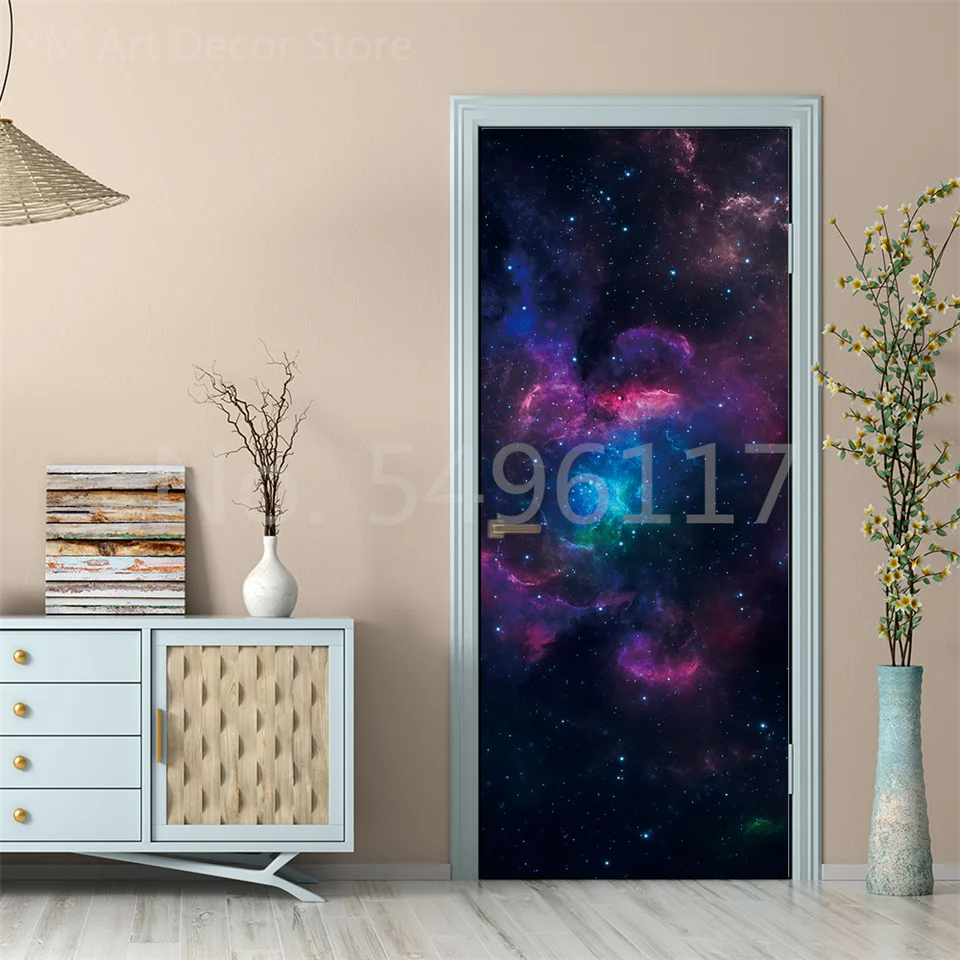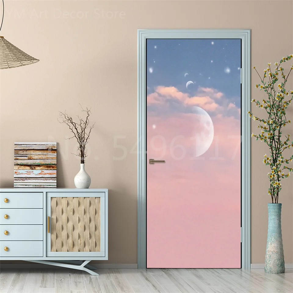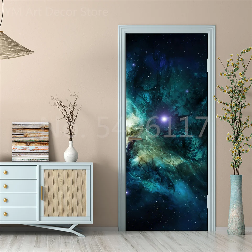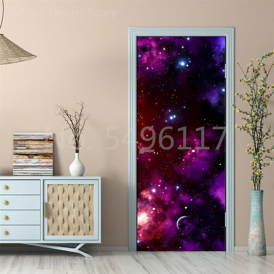 Astronauta Adesivo de porta Lua Terra Planeta Espaço porta Papéis de parede Adesivo de parede 3D Peel and Stick Vinil Quarto sala de estar Decoração Poster DIY Móveis geladeira porta adesivos