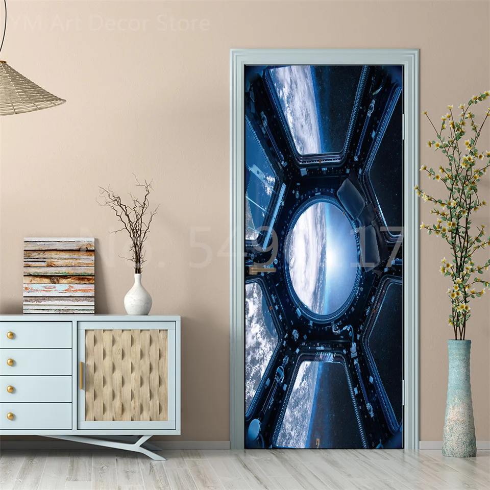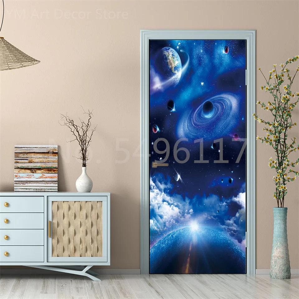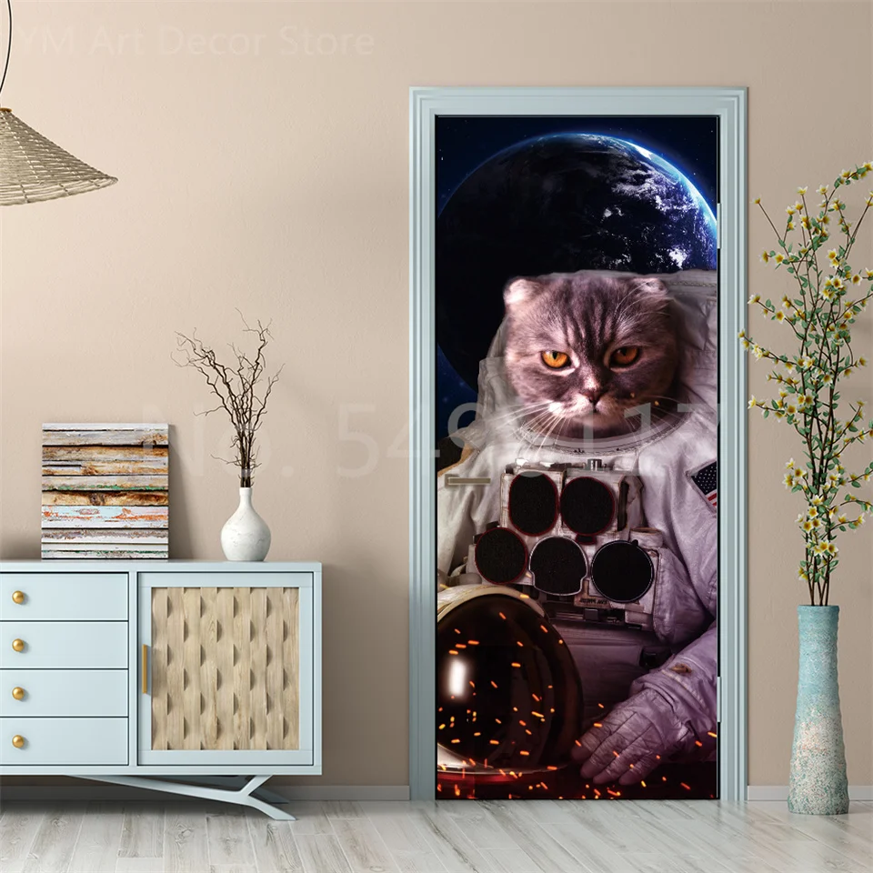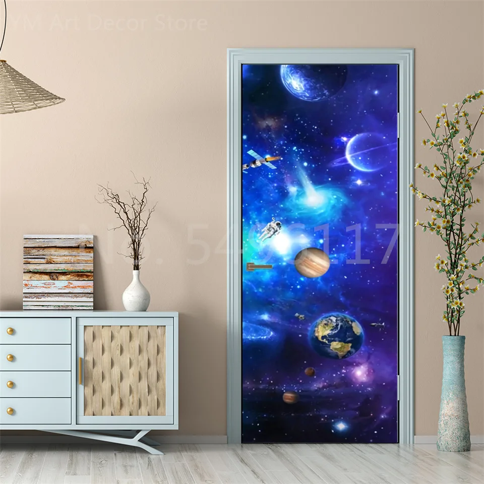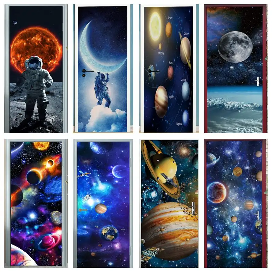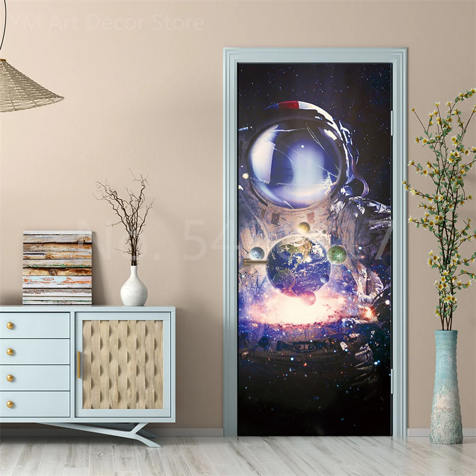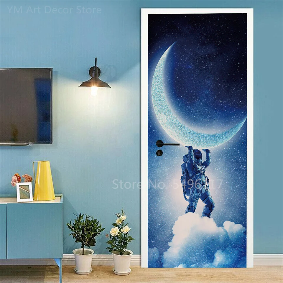 Astronauta porta adesivo lua terra planeta espaço porta wallpapers 3d adesivo de parede casca e vara vinil quarto sala estar decoração cartaz diy móveis geladeira porta adesivos