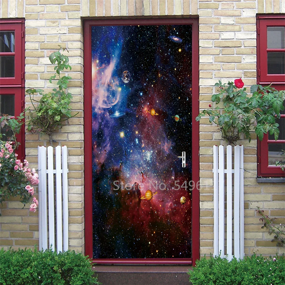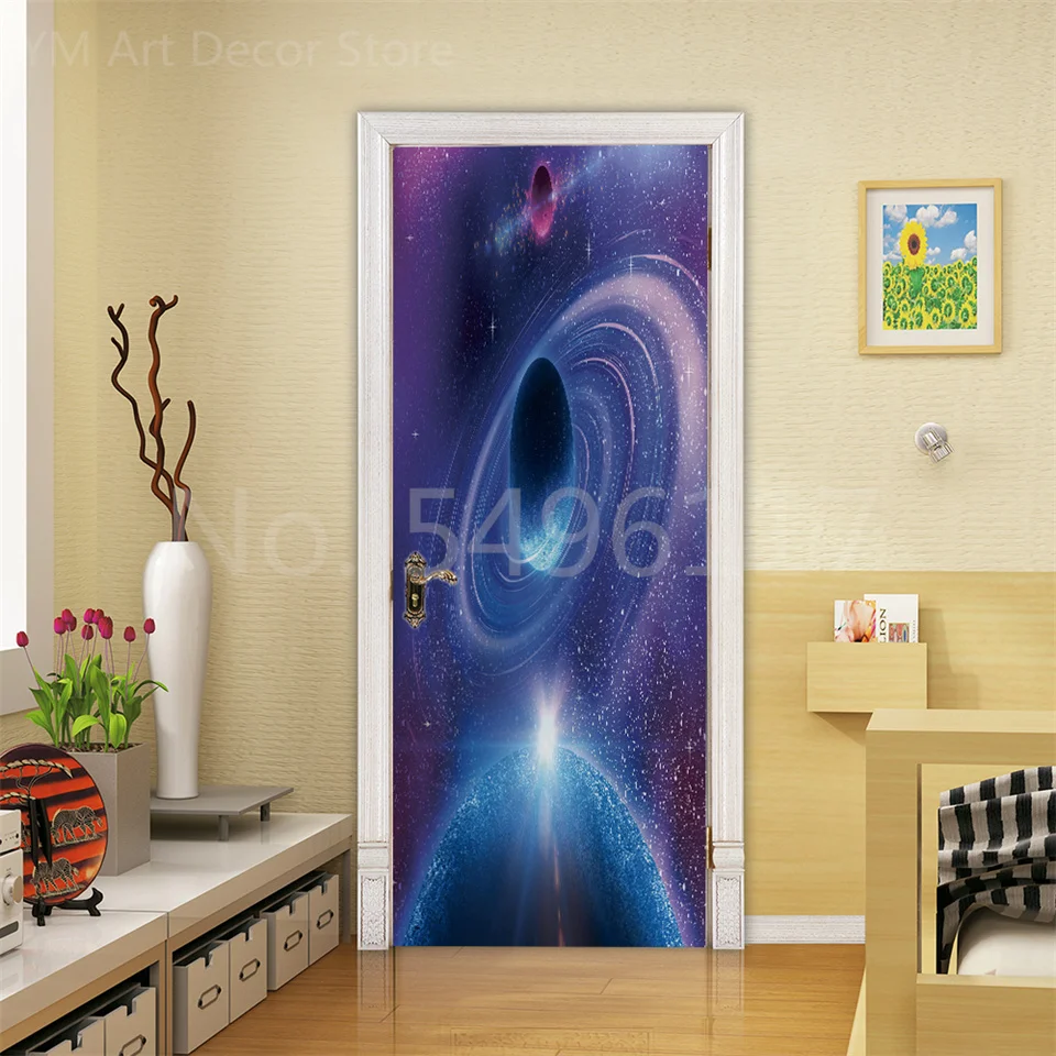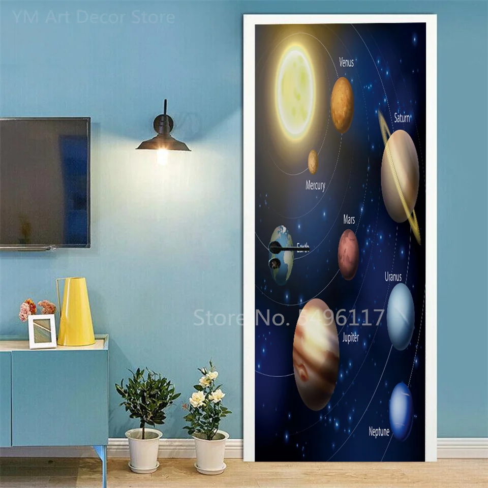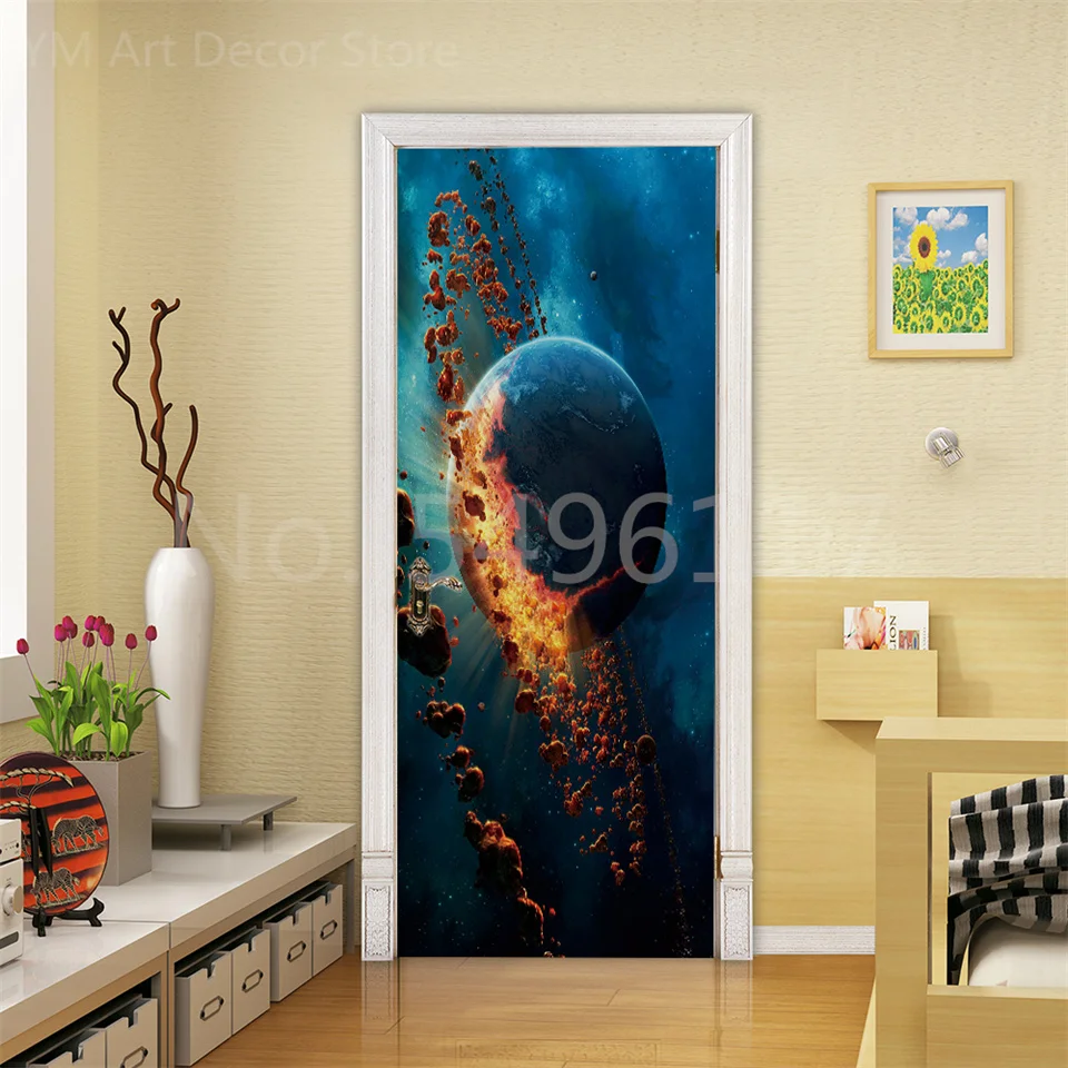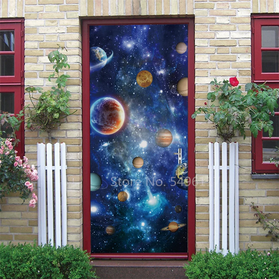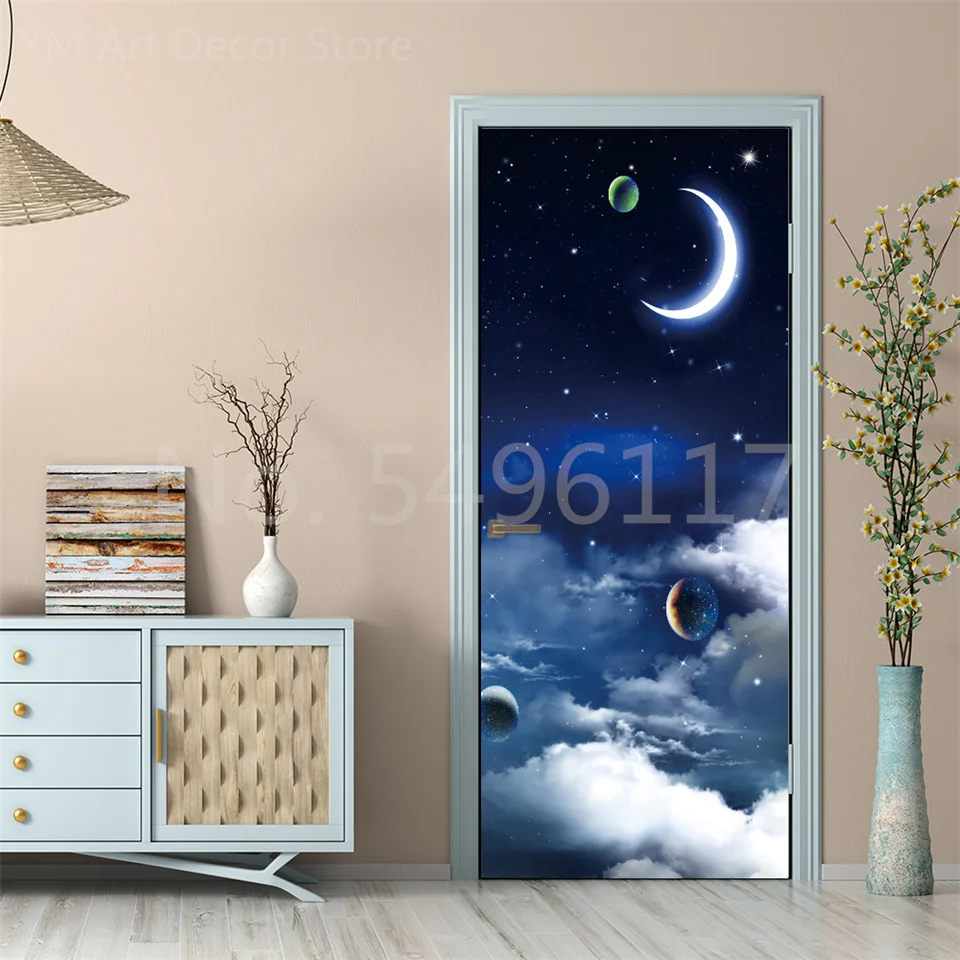 Astronauta porta adesivo lua terra planeta espaço porta wallpapers 3d adesivo de parede casca e vara vinil quarto sala estar decoração cartaz diy móveis geladeira porta adesivos