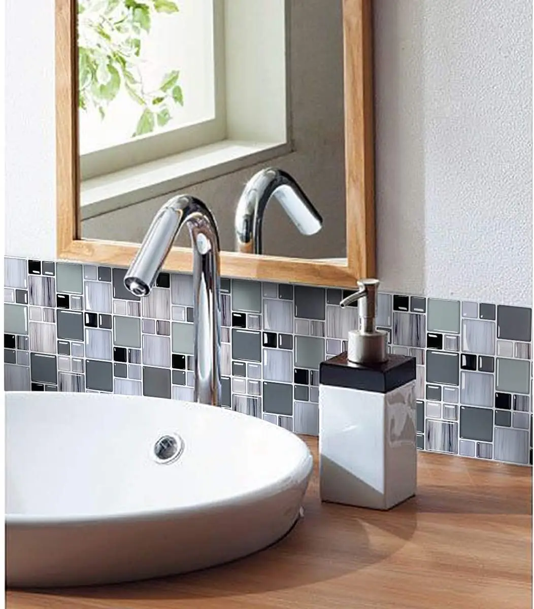 Azulejos autoadesivos para cozinha, azulejos autoadesivos à prova d'água, em vinil, mosaico 3d com 1 folha