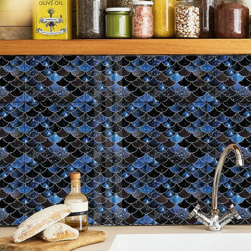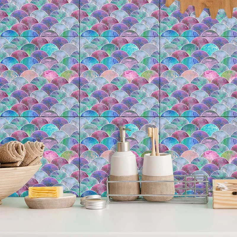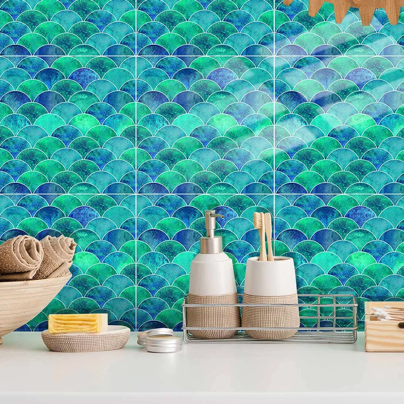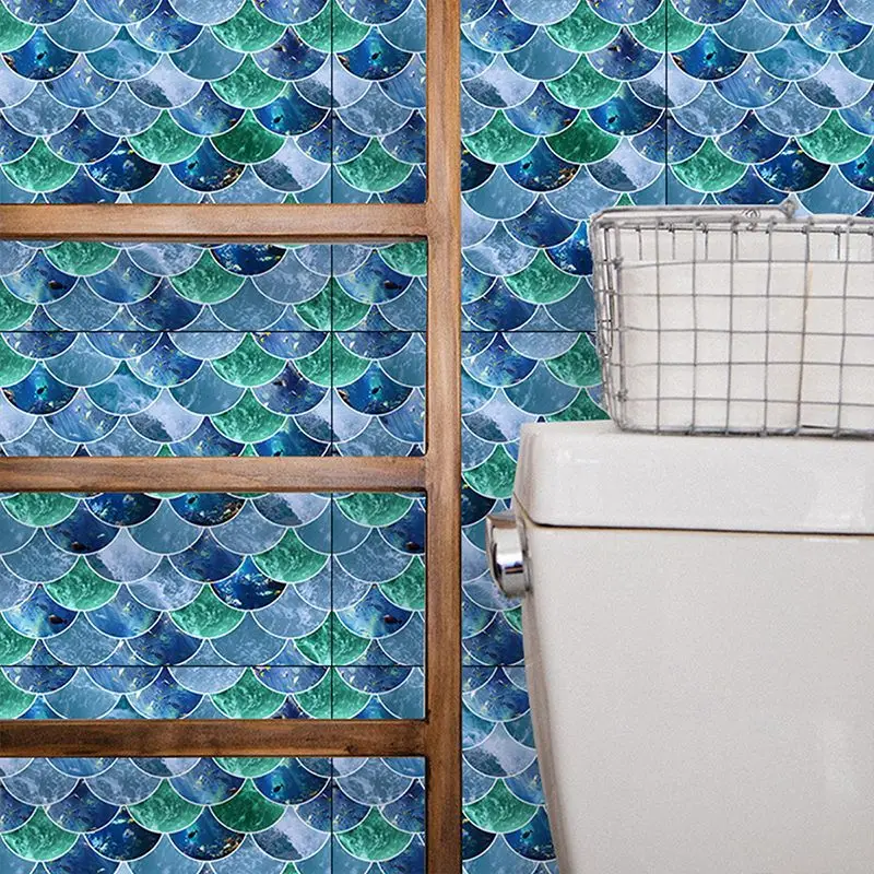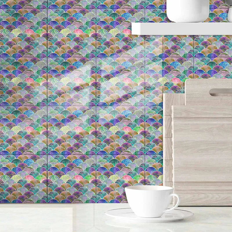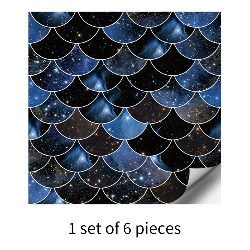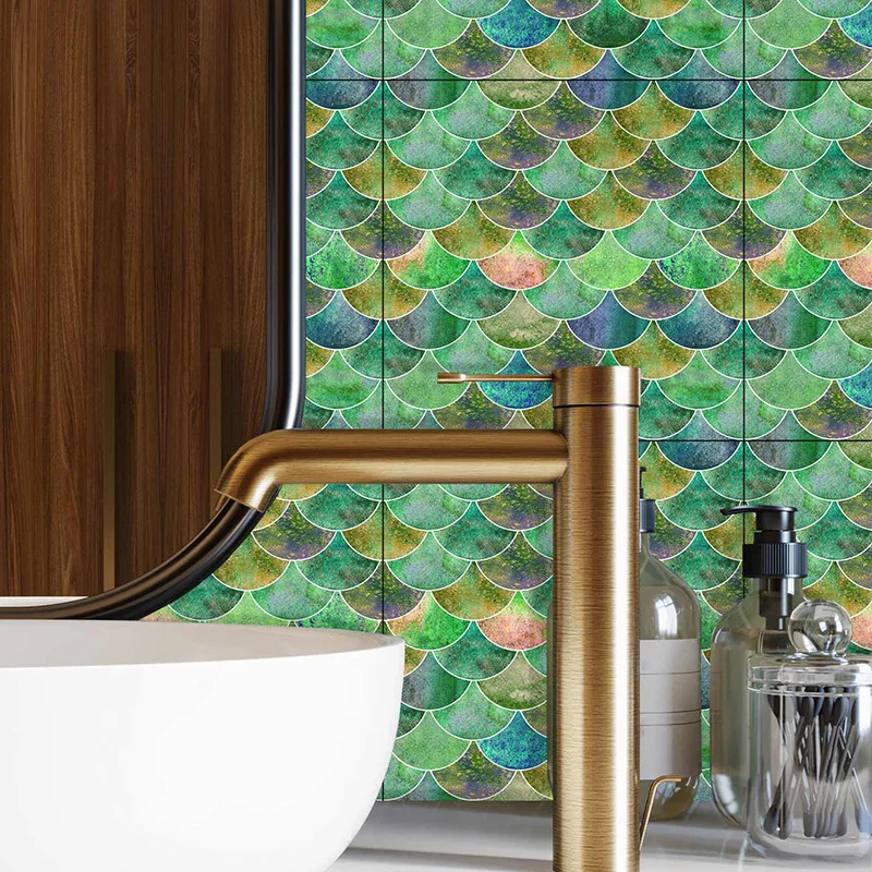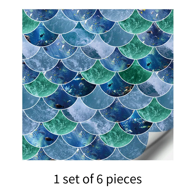Fã-forma auto-adesivo à prova dtile água telha adesivos de parede decoração do banheiro telhas escamas de peixe telhas cozinha à prova de óleo papéis de parede 6p