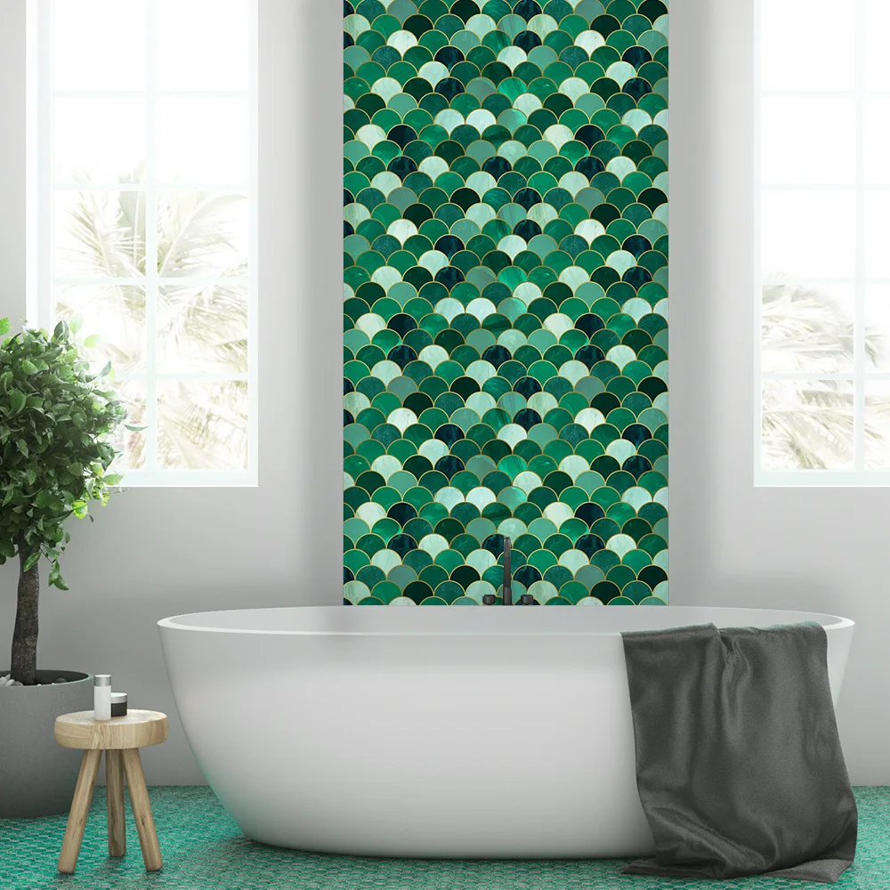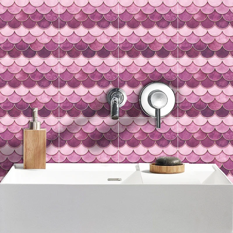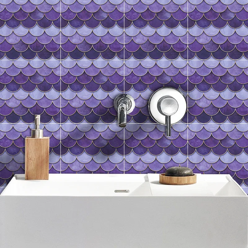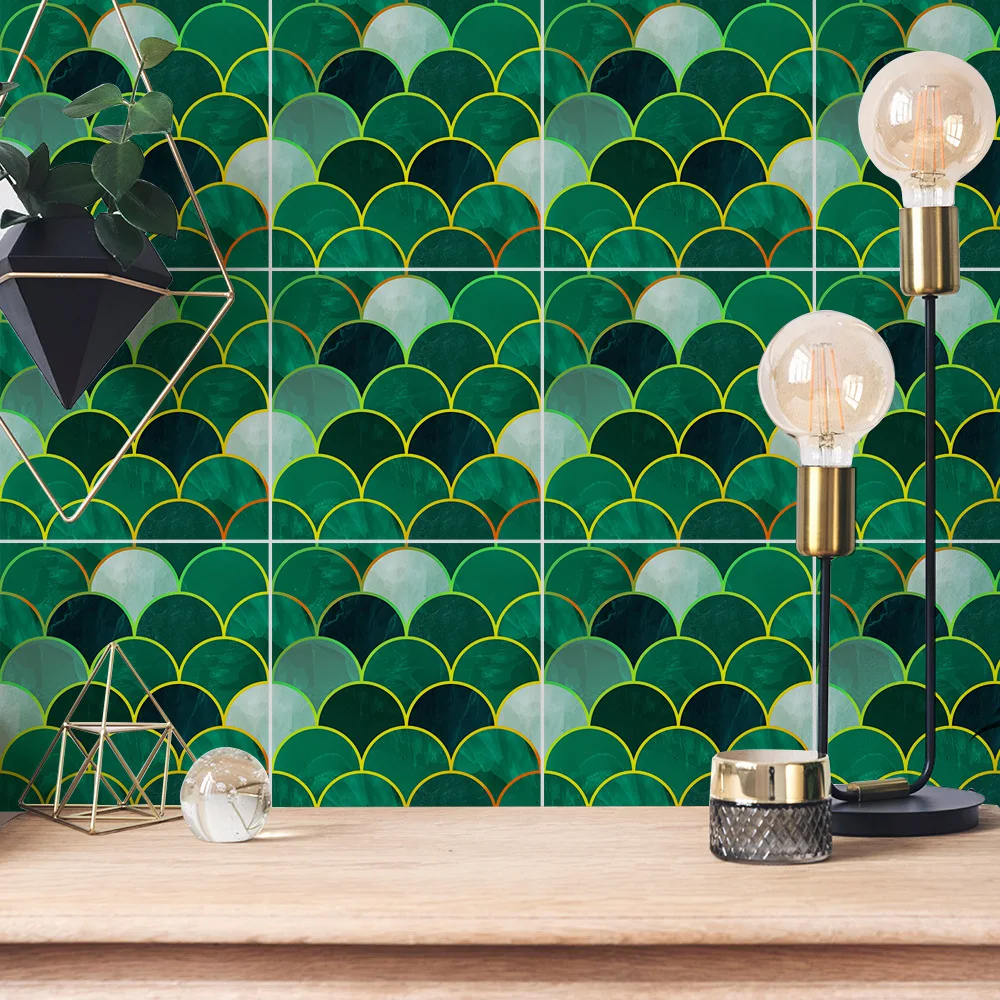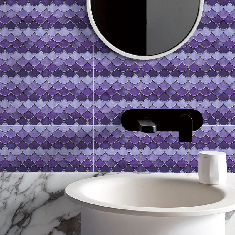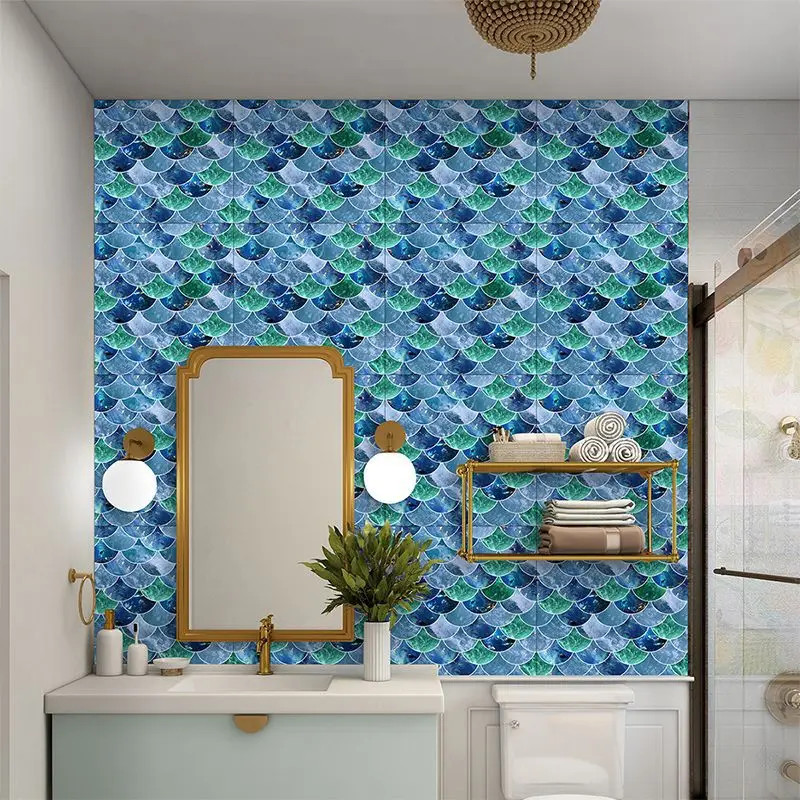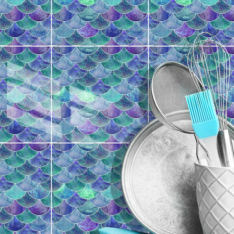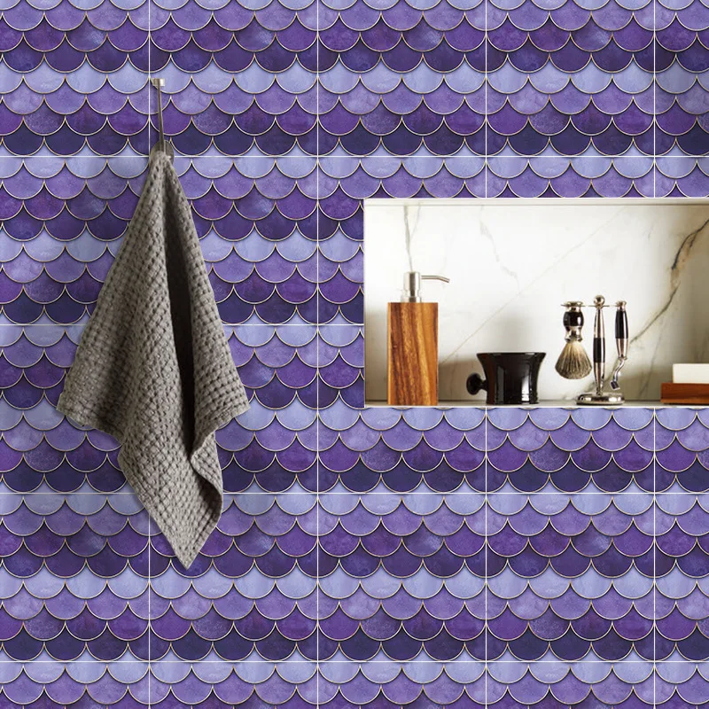 Fã-forma auto-adesivo à prova dtile água telha adesivos de parede decoração do banheiro telhas escamas de peixe telhas cozinha à prova de óleo papéis de parede 6p
