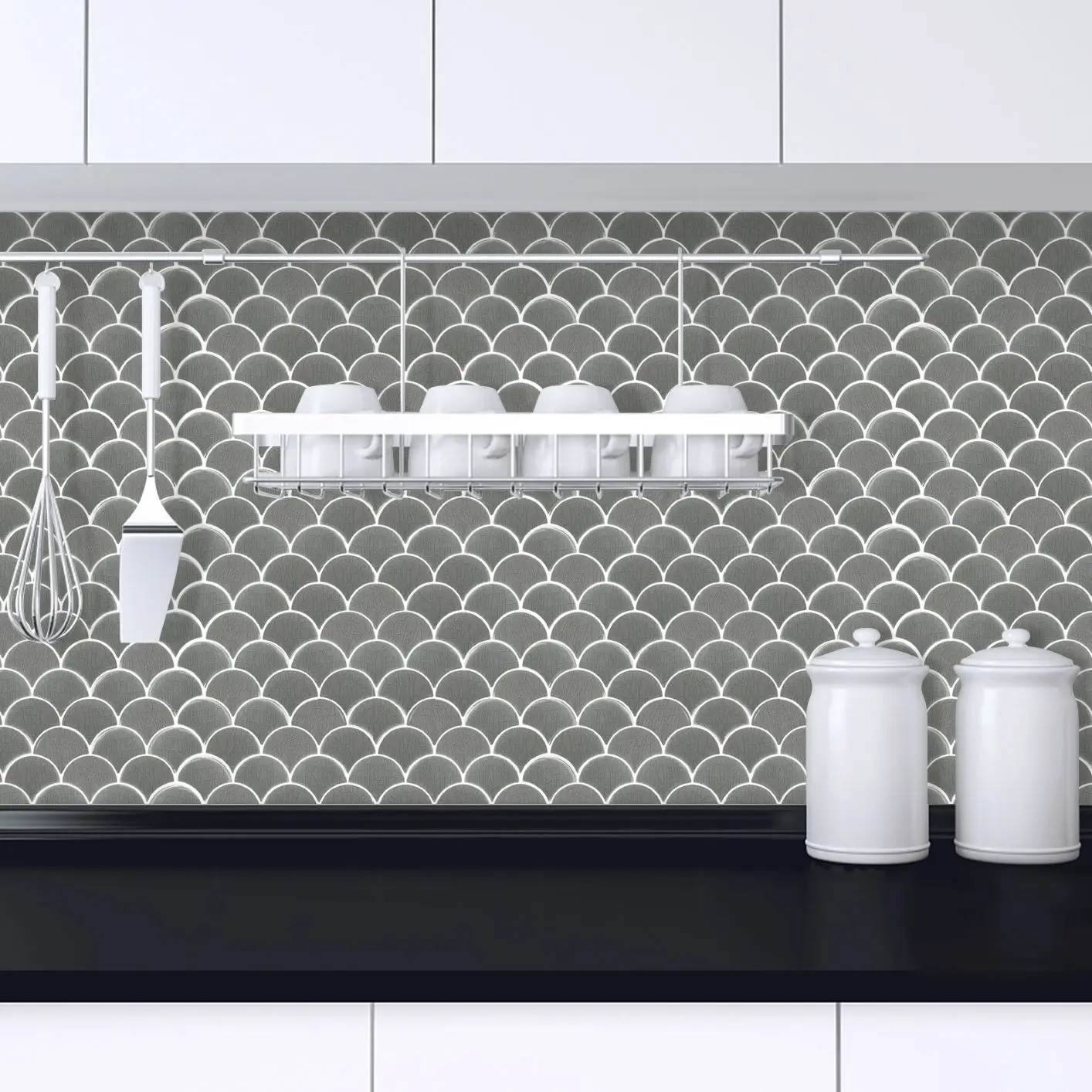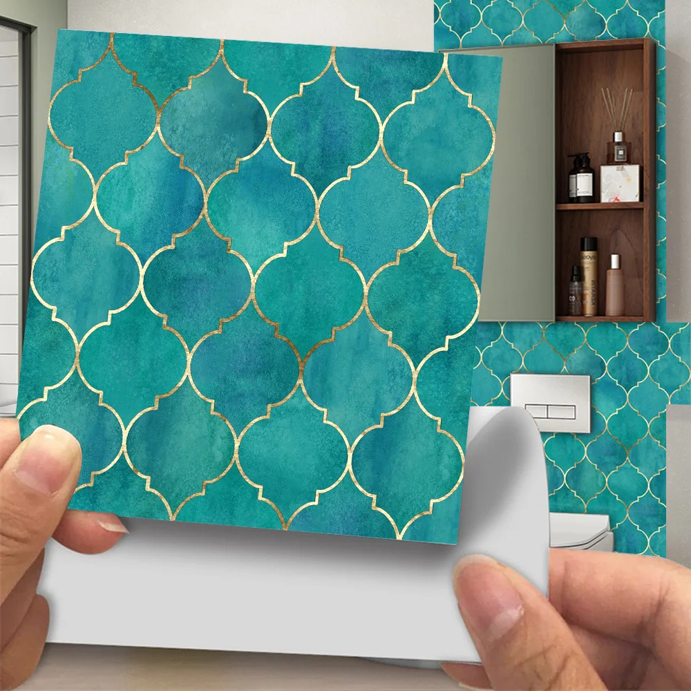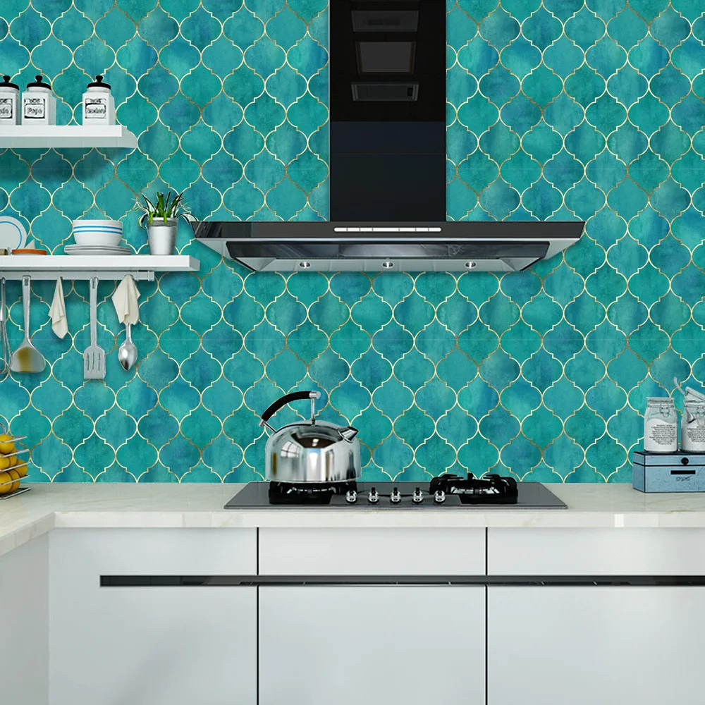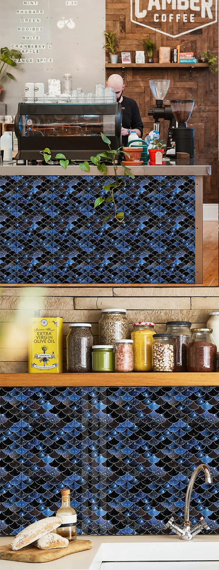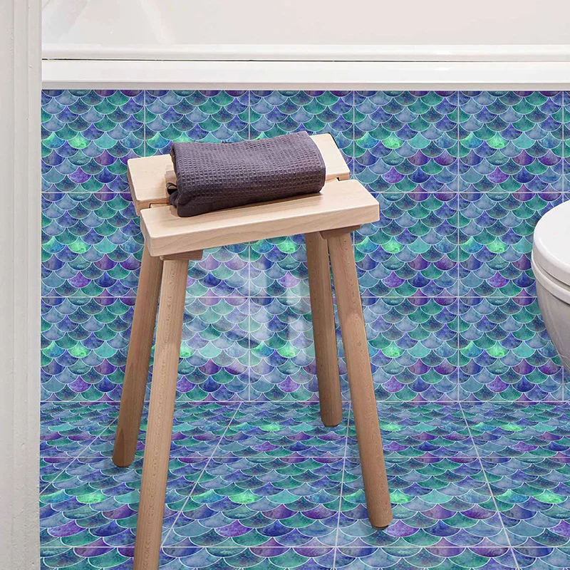 Fã-forma auto-adesivo à prova dtile água telha adesivos de parede decoração do banheiro telhas escamas de peixe telhas cozinha à prova de óleo papéis de parede 6p
