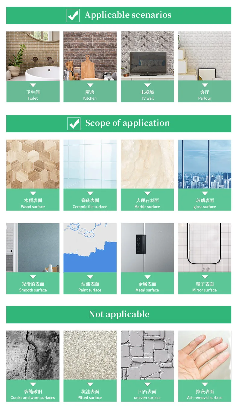 A fim de garantir que o adesivo de parede pode ser usado por um longo tempo, não é adequado para instalá-lo em contato direto com a água, mas