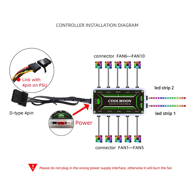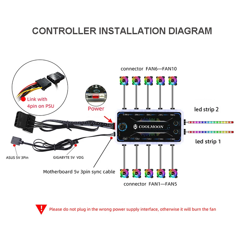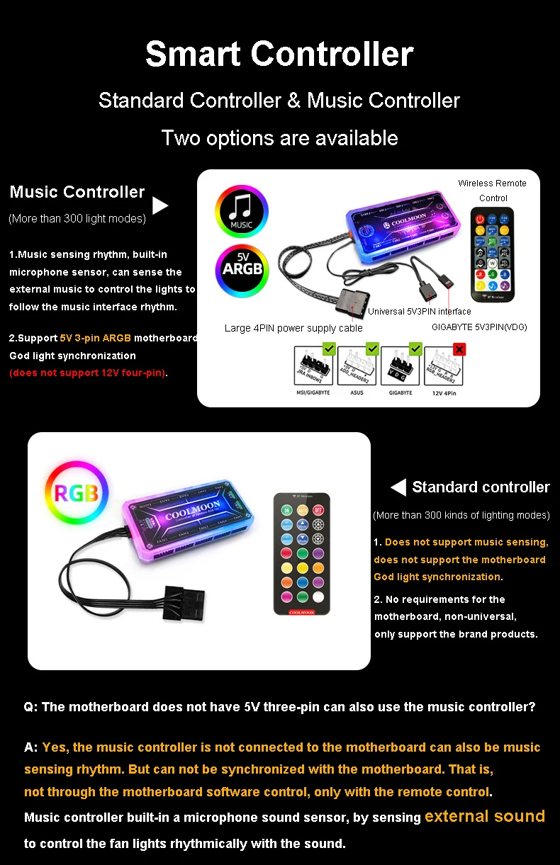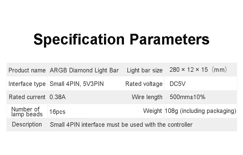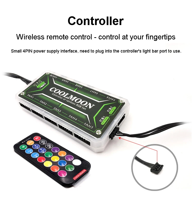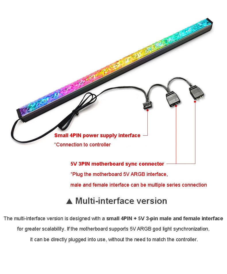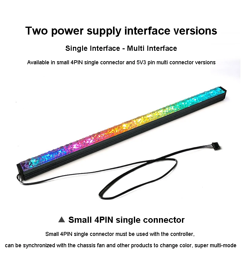 A pequena interface de 4 pinos precisa ser usada com o controlador da marca, a barra de luz muda de cor de forma síncrona com o super multi-mode.