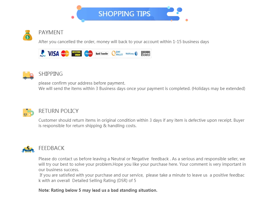 -Se você tem requisitos especiais para o tempo de entrega e canais de logística, entre em contato conosco, obrigado;