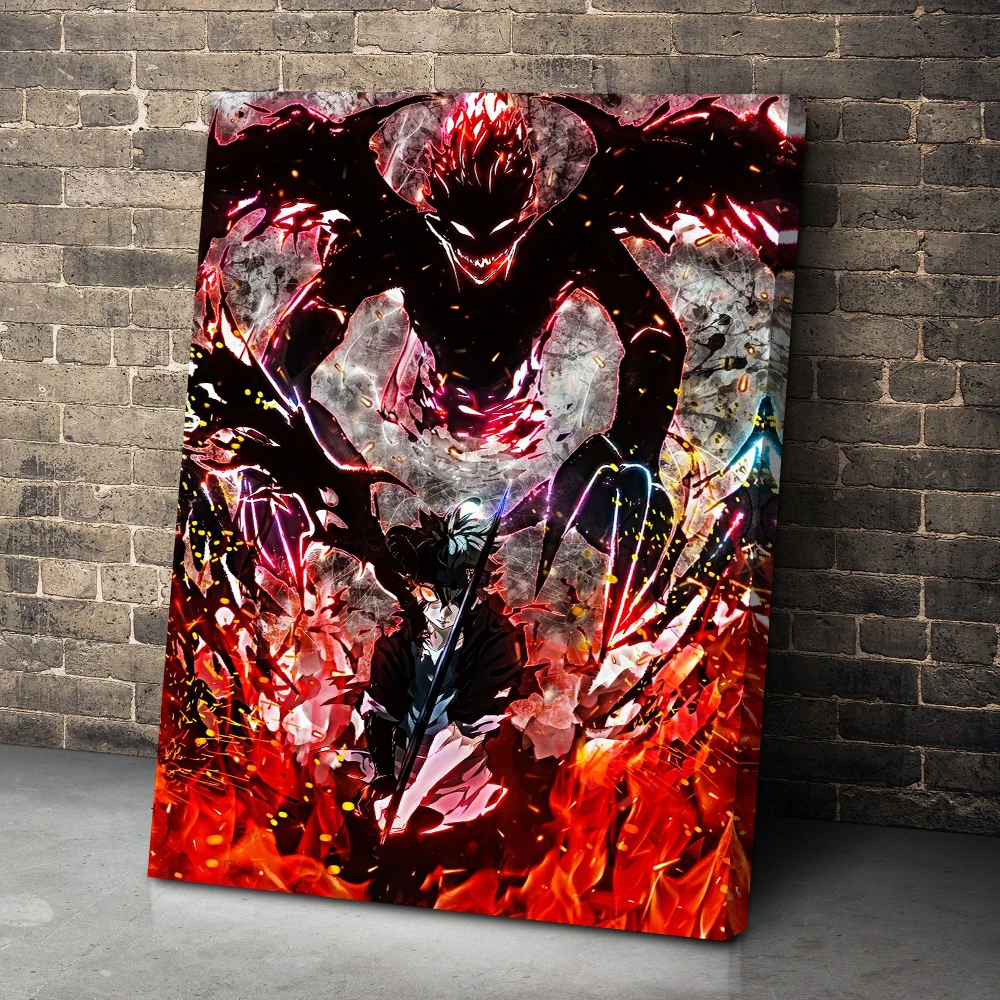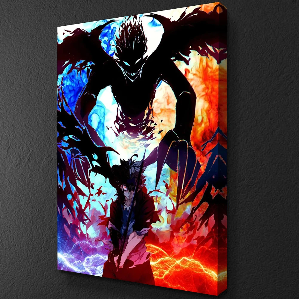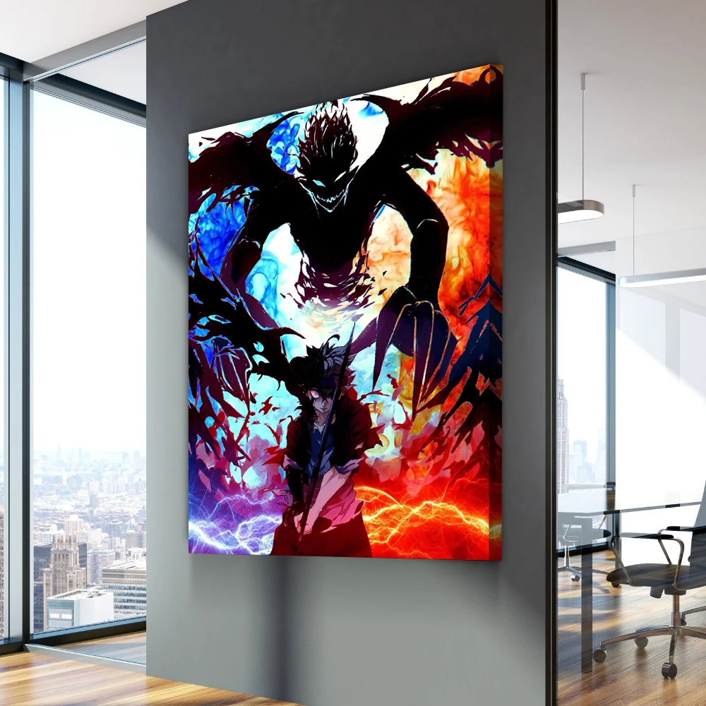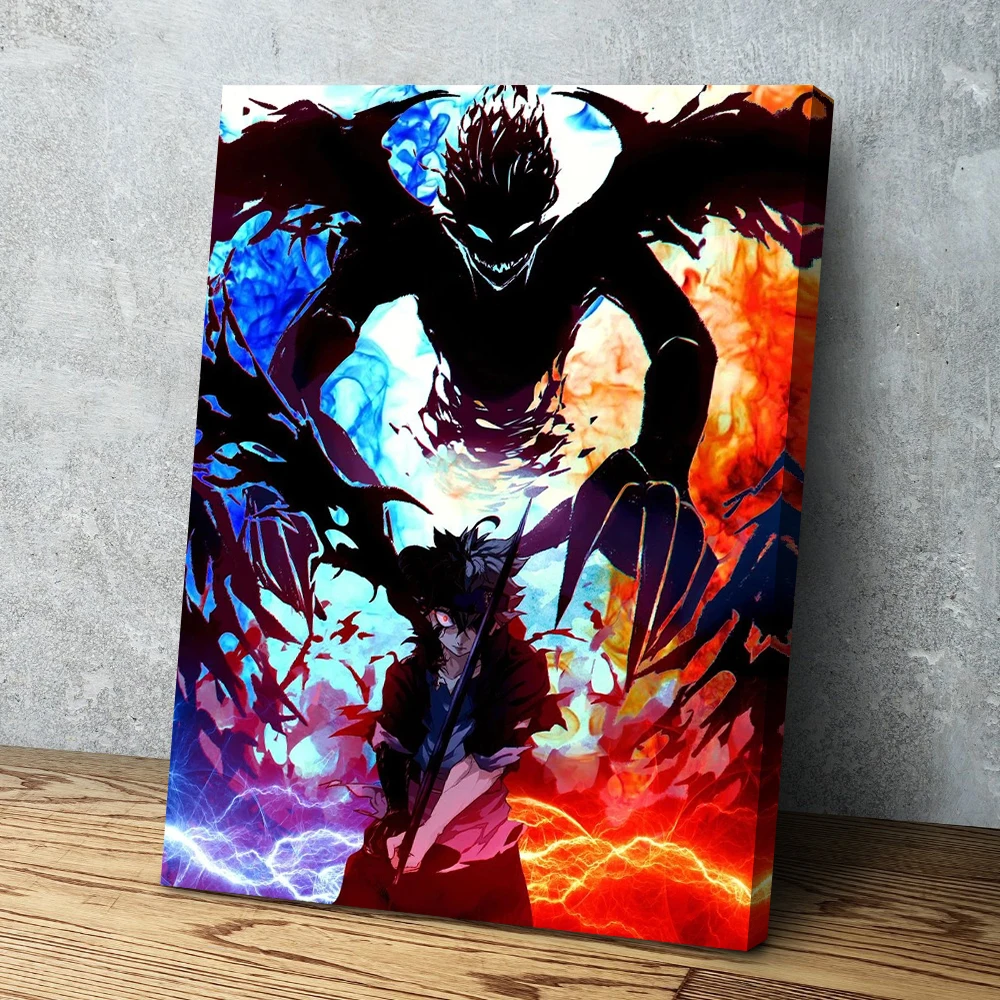 Imagem da lona moderna preto trevo decoração para casa anime pintura arte da parede hd impresso cartaz modular sala de estar menino fom emoldurado