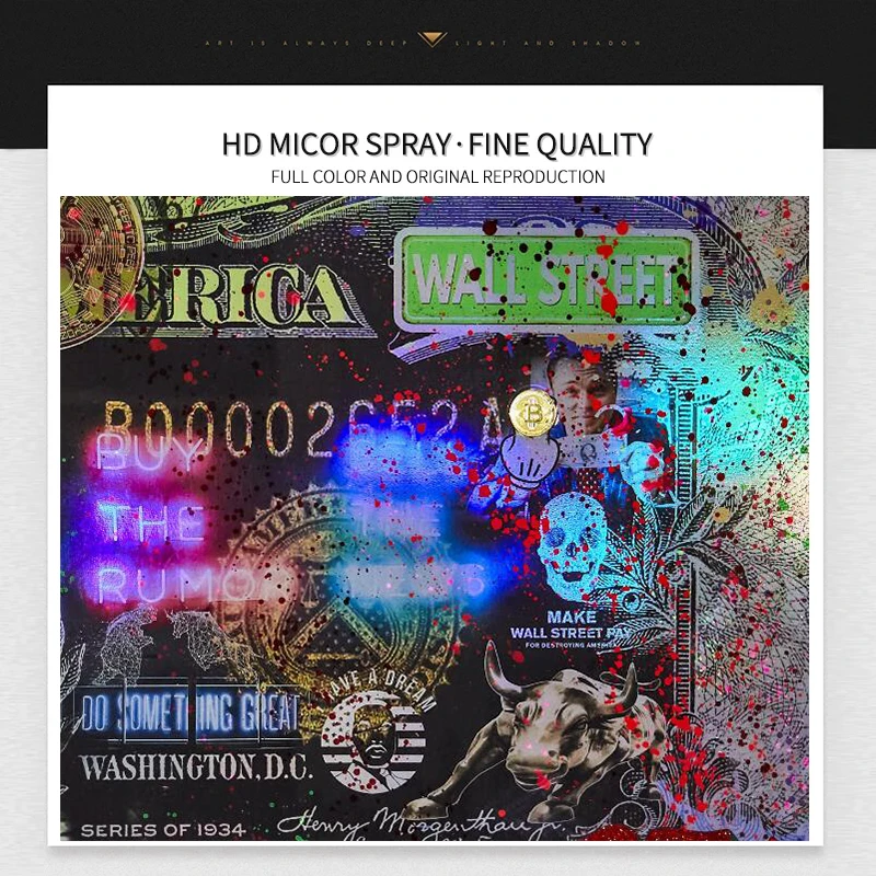 Inspirador parede de arte filme padrinho o lobo da parede rua bitcoin pintura em tela criatividade dinheiro arte poster decoração da sua casa R$70,21