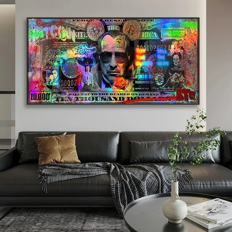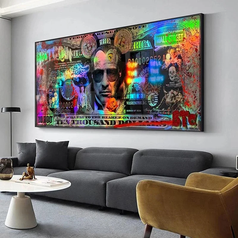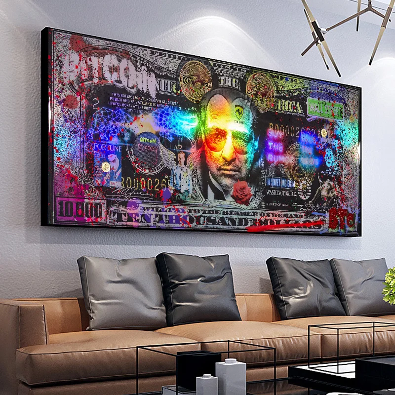 Inspirador parede de arte filme padrinho o lobo da parede rua bitcoin pintura em tela criatividade dinheiro arte poster decoração da sua casa