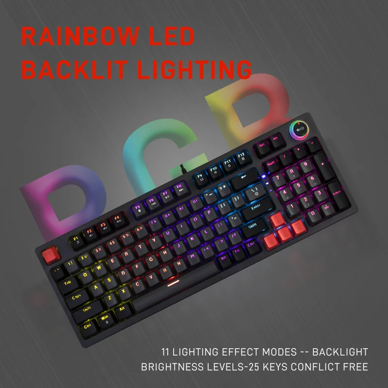 Jedel vermelho interruptor 96 teclas teclado mecânico Volume e luz ajuste perso