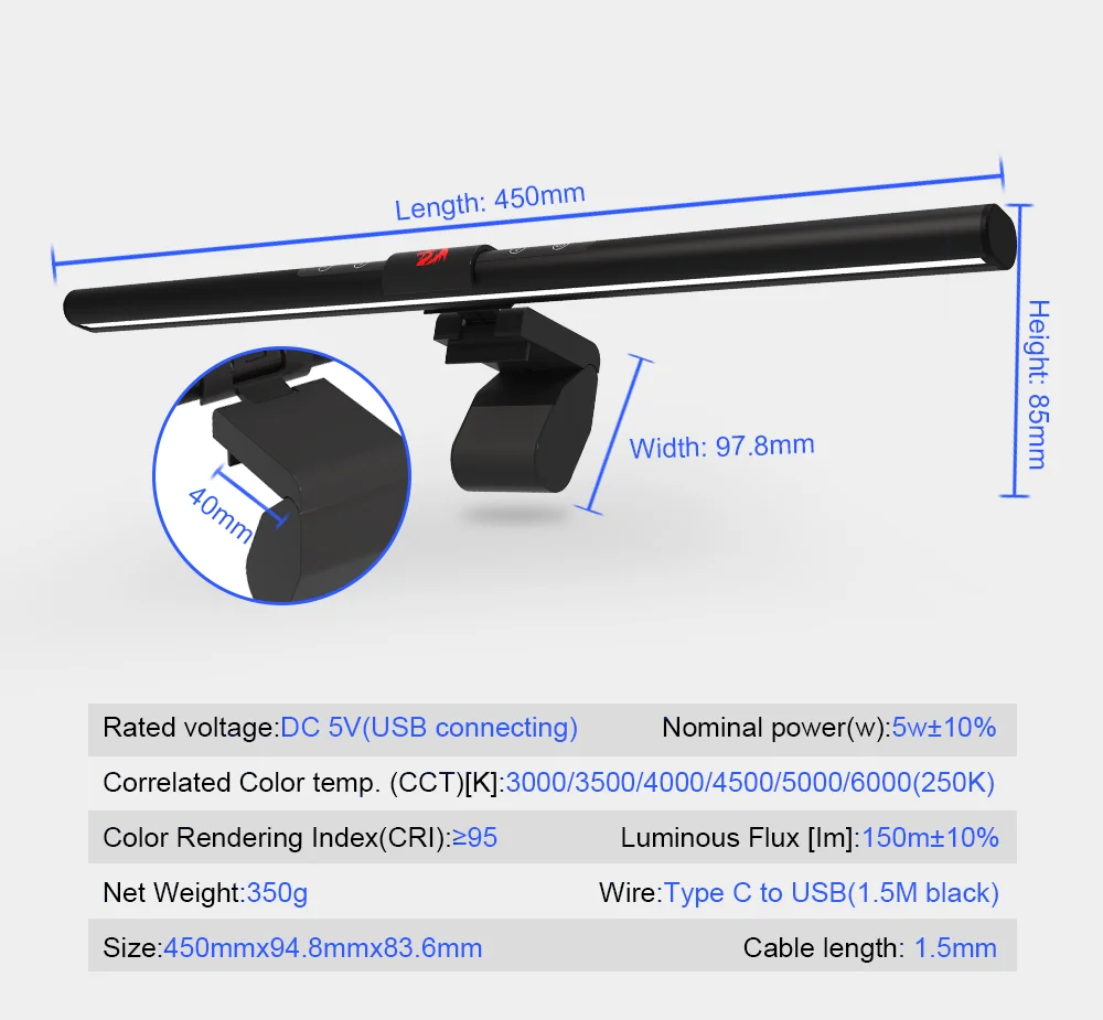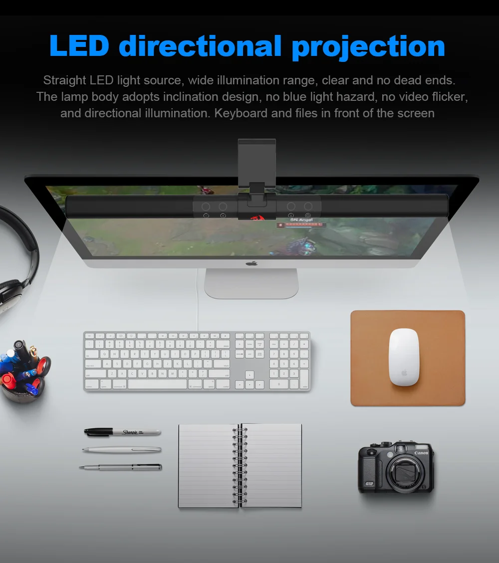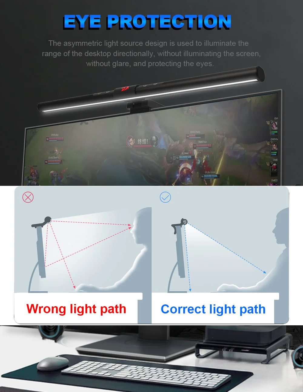Usar lâmpadas de mesa normais ao usar um computador pode facilmente causar reflexões na tela. A lâmpada de suspensão da tela usa uma fonte de luz assimétrica para iluminar de cima para baixo, o que não causará reflexões da tela e fará um trabalho melhor.