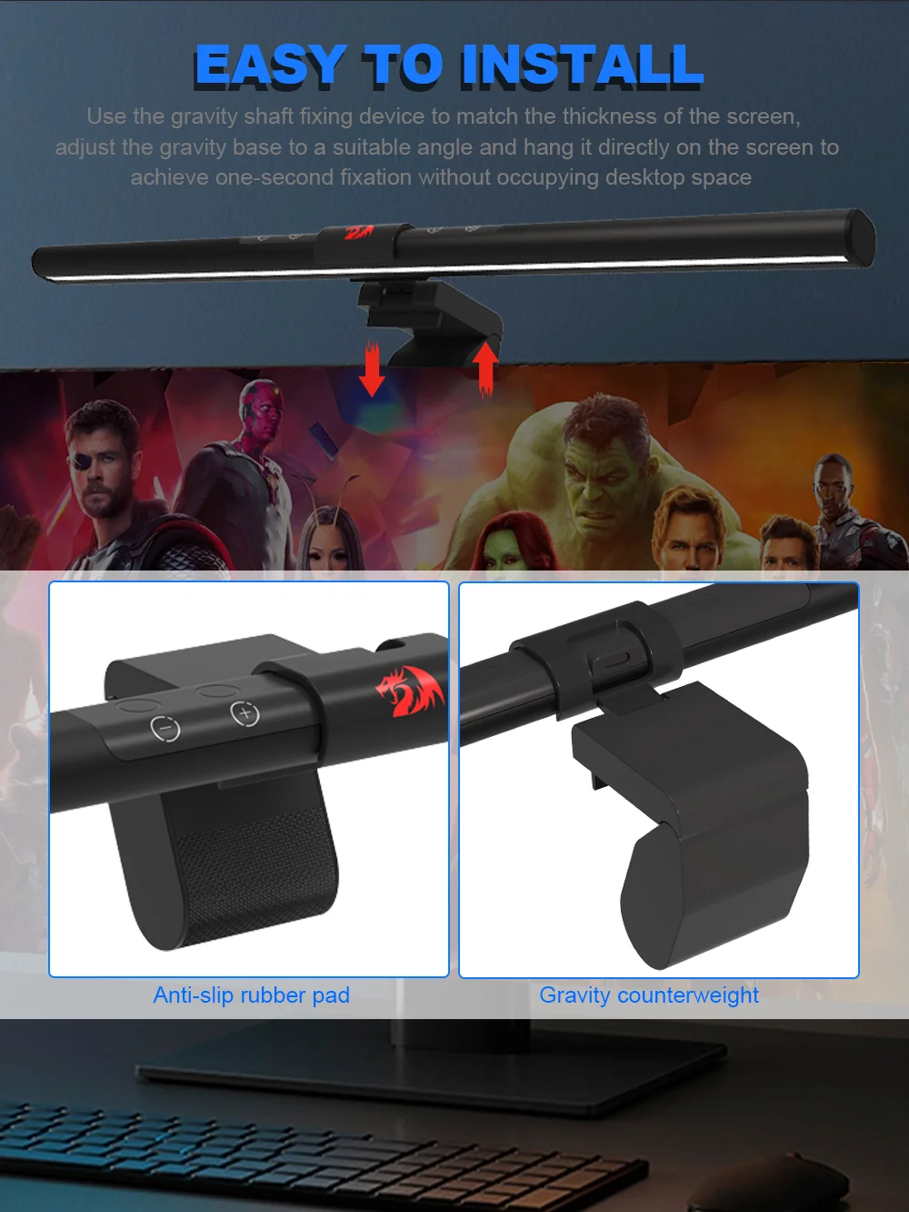 Lâmpada de led redragon beril para computador, lâmpada para mesa com brilho e iluminação para os olhos, com usb
