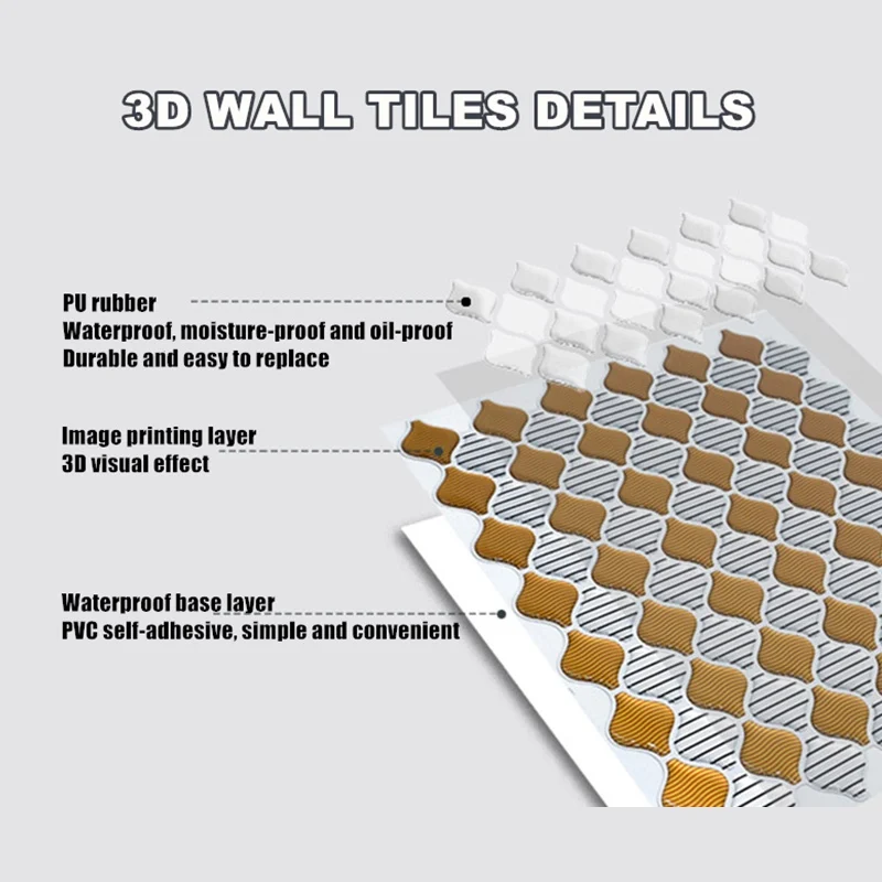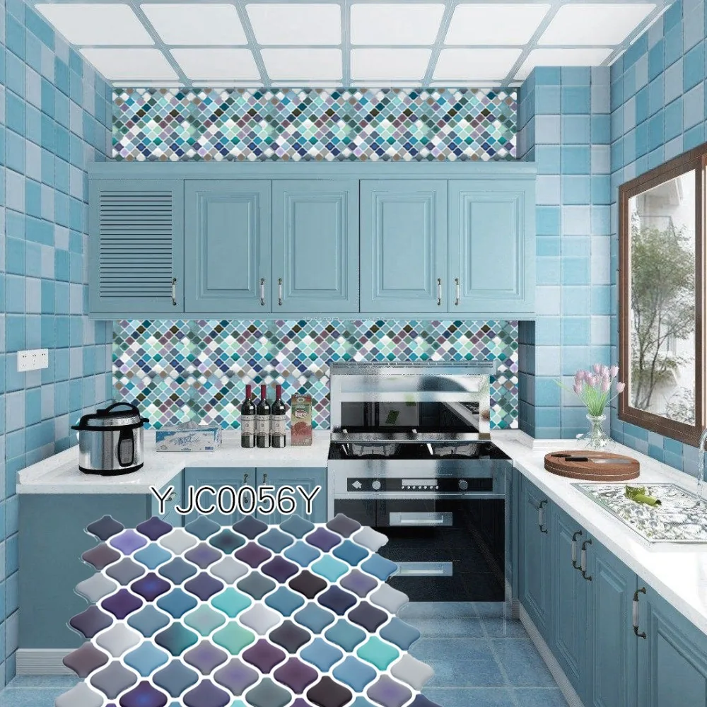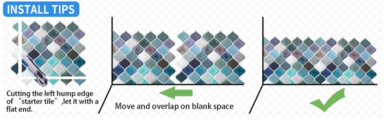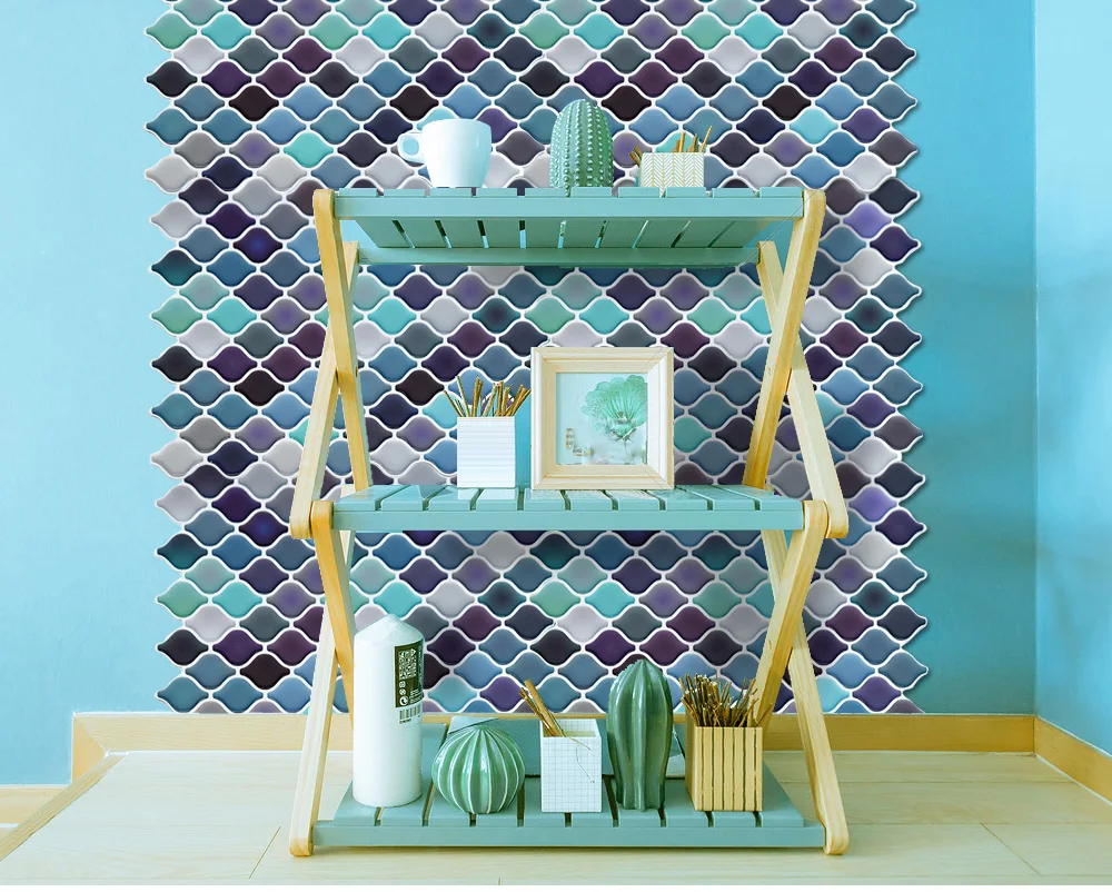 As telhas descascadas e pegajosas podem ser usadas em superfícies lisas, limpas e secas, como drywall pintado ou mesmo azulejo cerâmico. apenas descasque e cole, fácil de instalar. tudo que você precisa é uma régua, um lápis, um pano, E tesoura. este projeto vai economizar tempo e dinheiro em comparação com telha real. e não há nenhum problema que a telha não vai caber o tamanho da sua parede como é fácil de cortar.