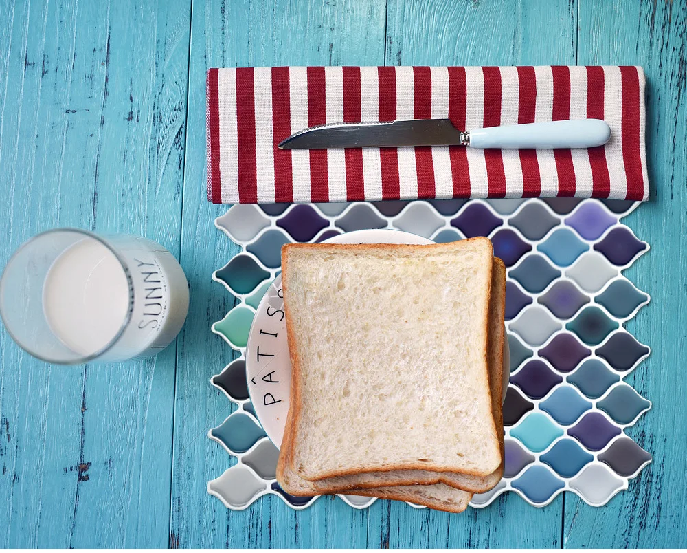 As telhas podem ser facilmente instaladas sobre painéis existentes ou em uma superfície lisa. especialmente concebido para backsplashes de cozinha e banheiro backsplashes, as telhas são resistentes ao calor de topos de fogão e umidade dos banheiros.