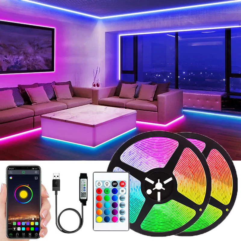 Led luz de tira usb bluetooth rgb 5050 5v rgb luzes tv tela desktop backlight rainbow iluminação fita controlador