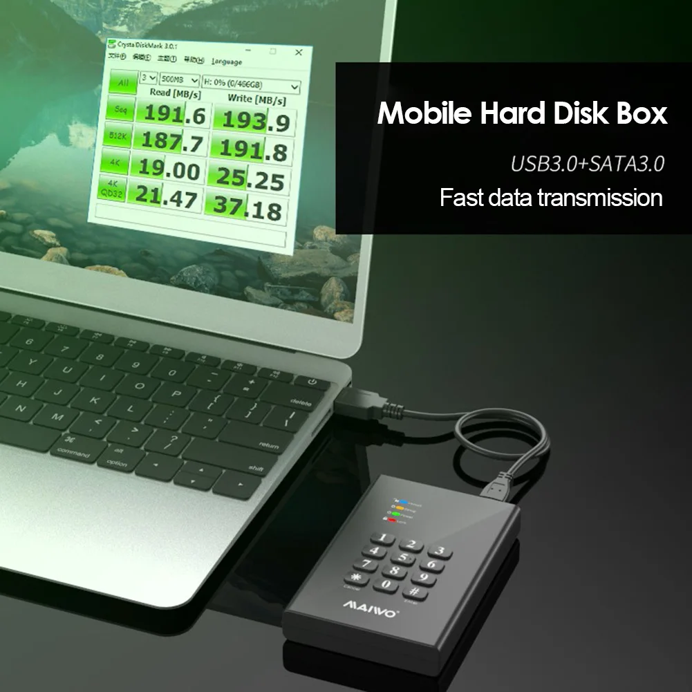Maiwo senha gabinete de disco rígido externo 2tb hd dados criptografados caixa de armazenamento sata i/ii/iii ssd usb3.0 acessório de memória do computador