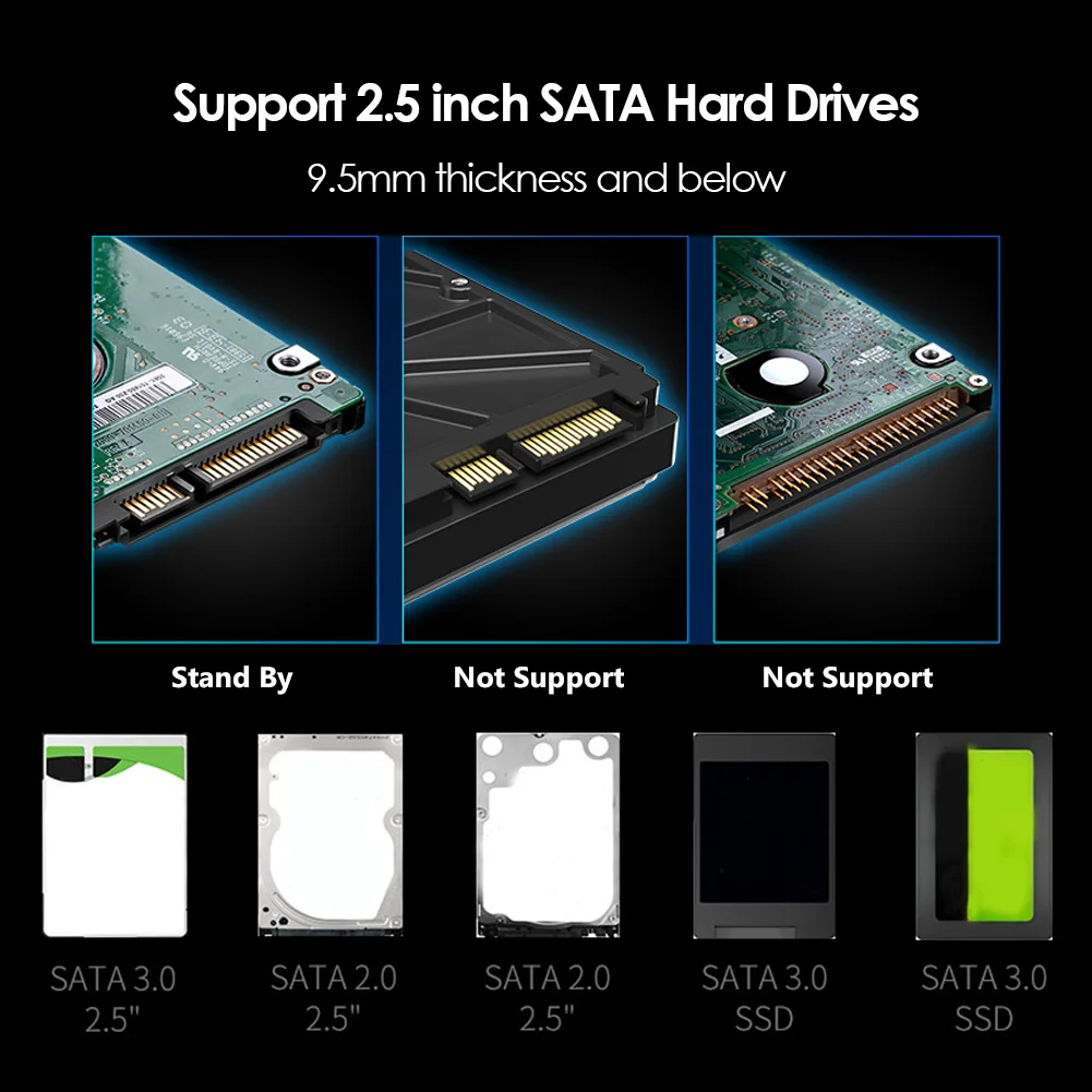 A caixa de disco rígido de criptografia suporta discos rígidos sata de 2.5 polegadas (incluindo ssd) com uma espessura de 9.5mm ou menos.