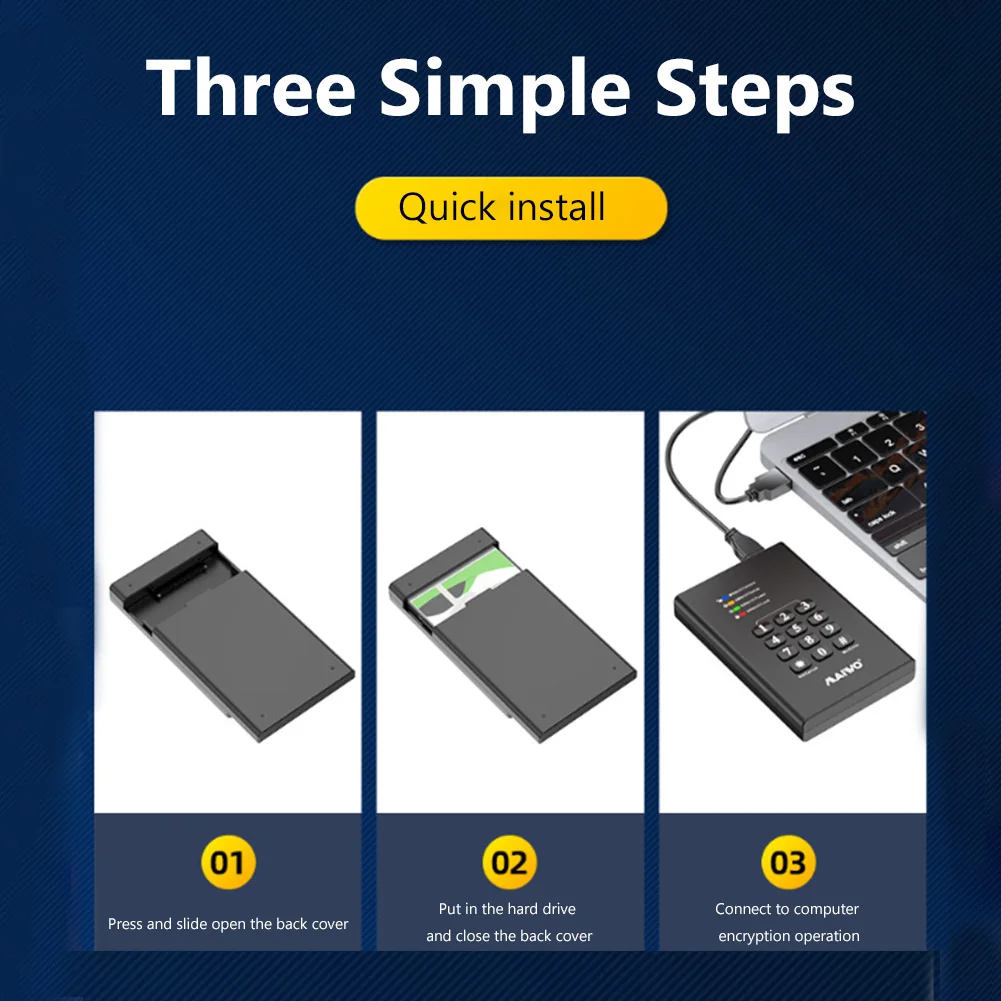 O esquema de criptografia aes256 permite que seu disco rígido criptografado seja criptografado completamente, mesmo que o disco rígido seja removido e danificado, os dados internos não podem ser lidos.