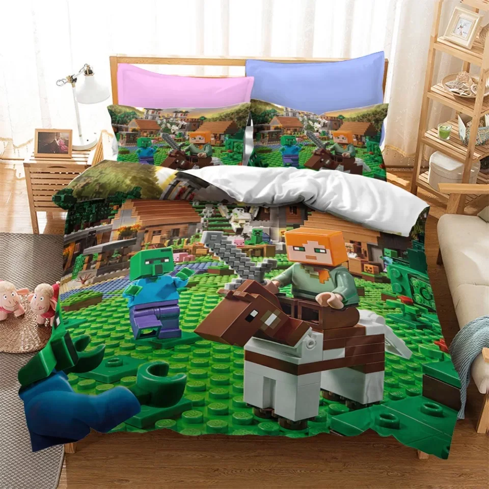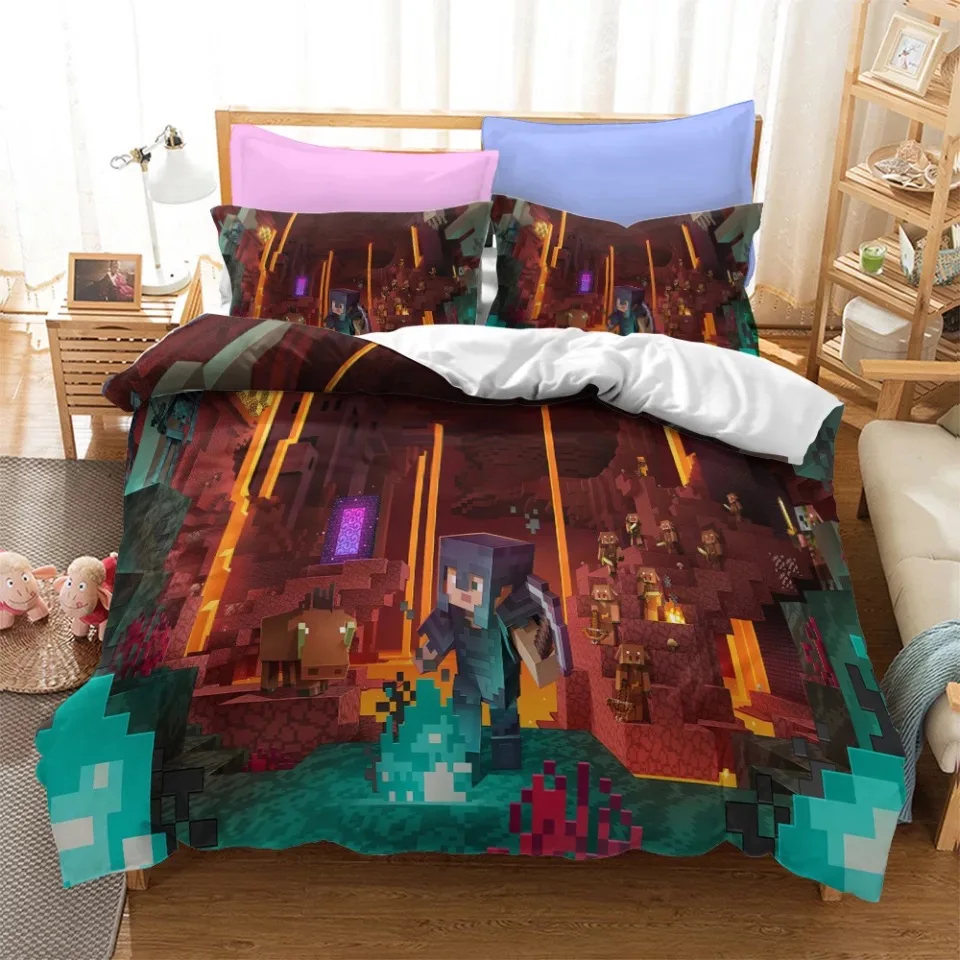 Minecraft Likurb meu jogo mundo diamante steve duvet caso fronha cama conjunto gêmeo rainha rei tamanho para crianças meninos meninas quarto