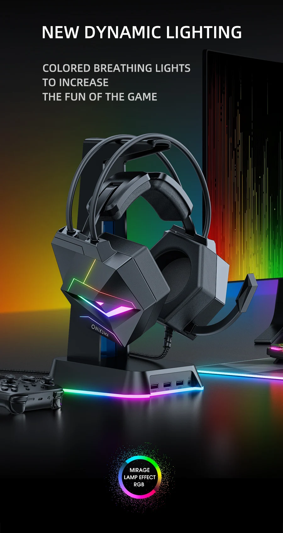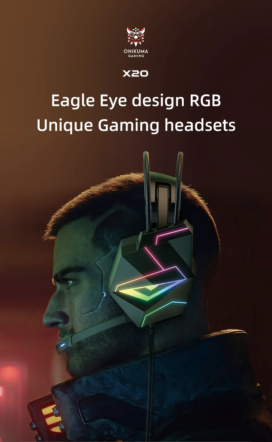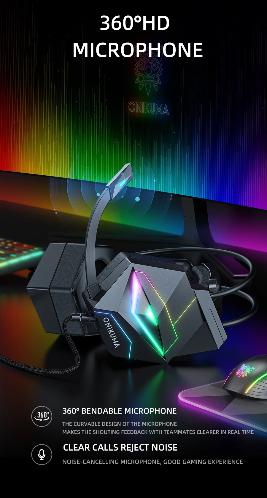 ONIKUMA-X20 Dynamic Gaming Headset com microfone, fones de ouvido, som surround,