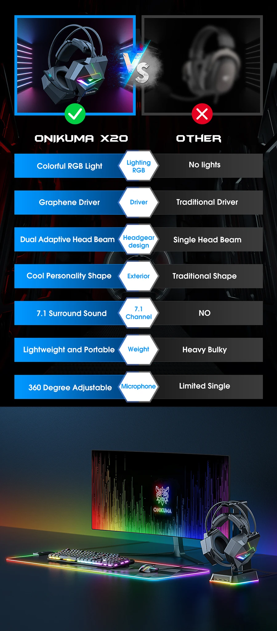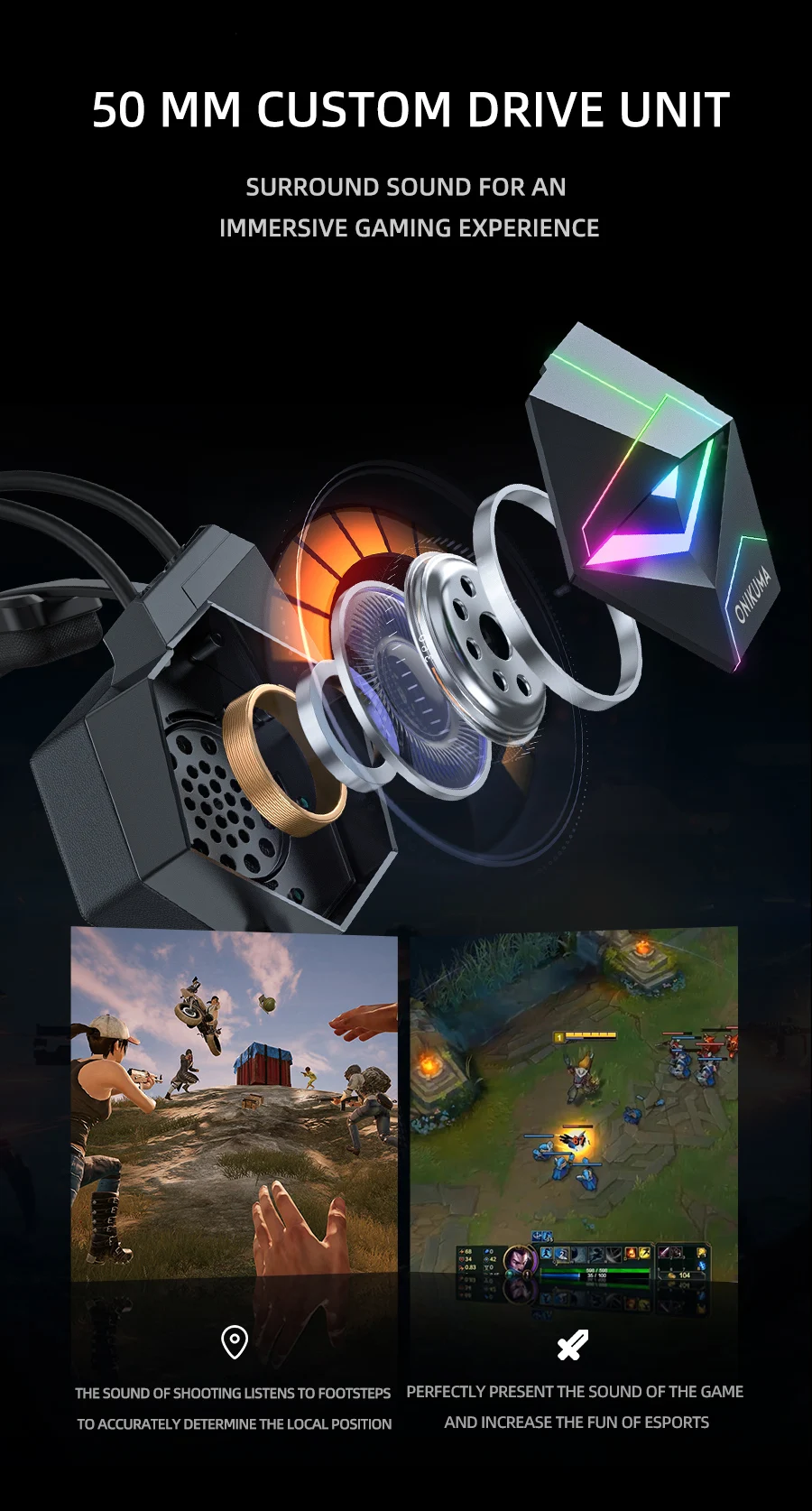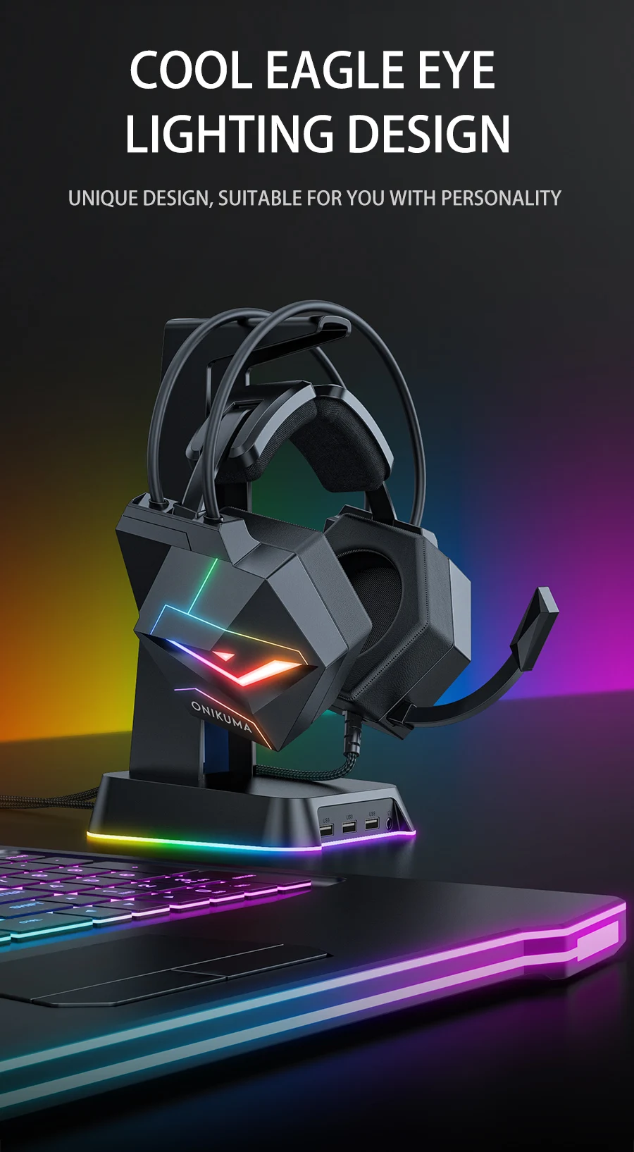 ONIKUMA-X20 Dynamic Gaming Headset com microfone, fones de ouvido, som surround,