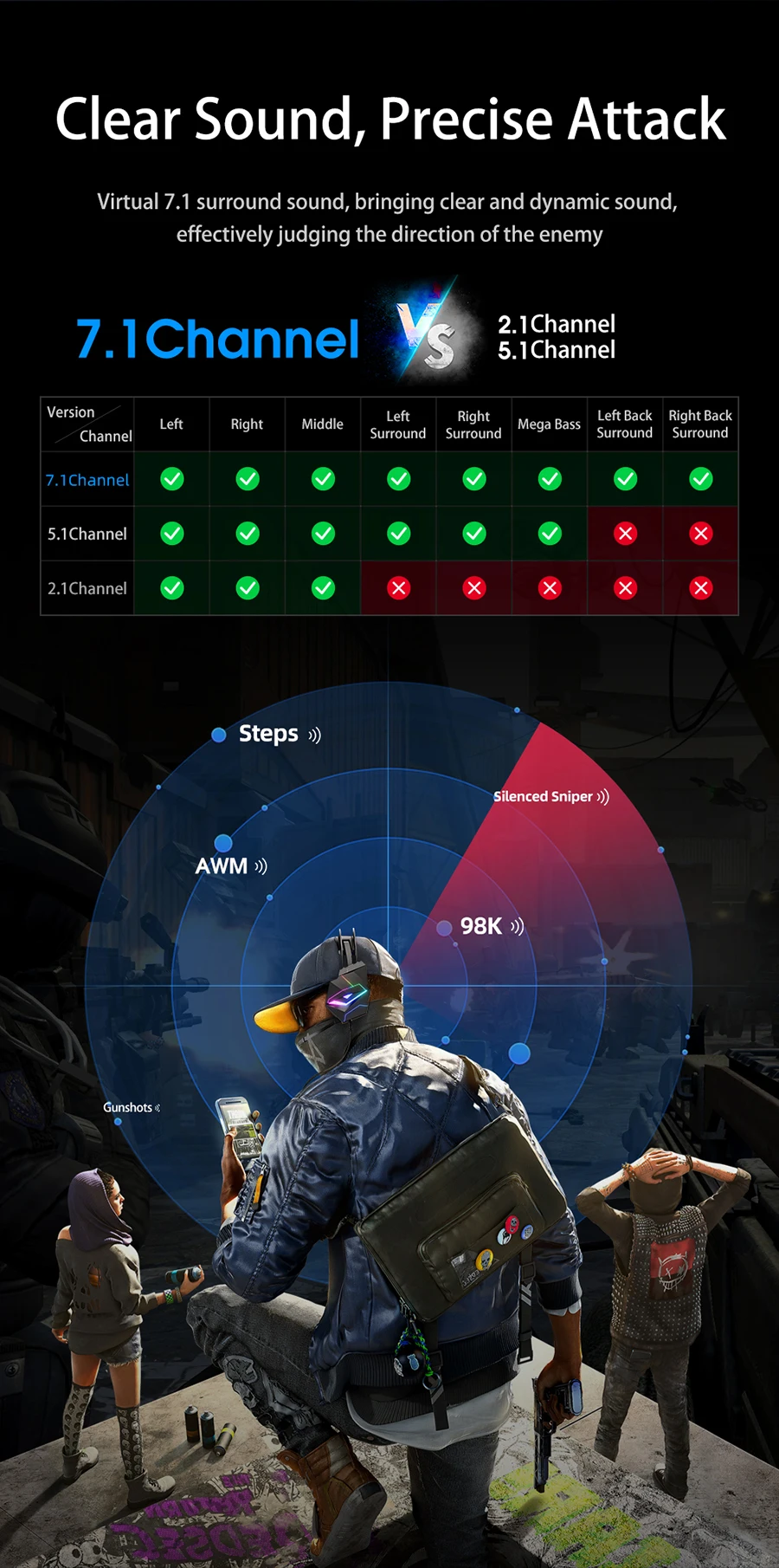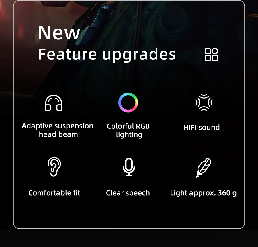 Feixe principal suspensão adaptável, luz colorida RGB, som HIFI