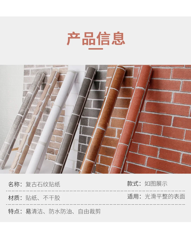 Papel de parede autoadesivo em pvc, papel de parede para decoração de casa e quarto, sala de estar, imitação de tijolos