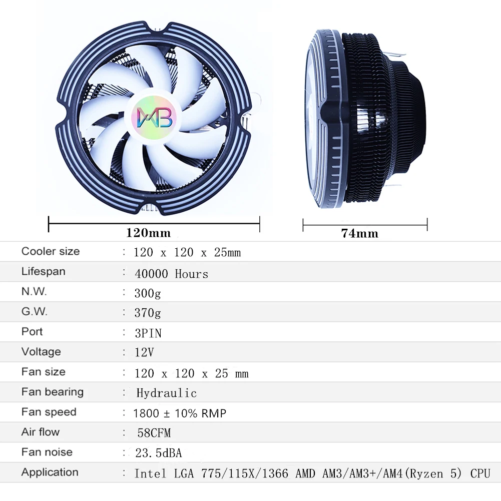 PC CPU Cooler Fan Ventilador 120 milímetros Colorido 4PIN Para Intel LGA 1200 1150 1151 1155 1156 775 1366 2011 AMD X79 AM3 AM4 Radiador