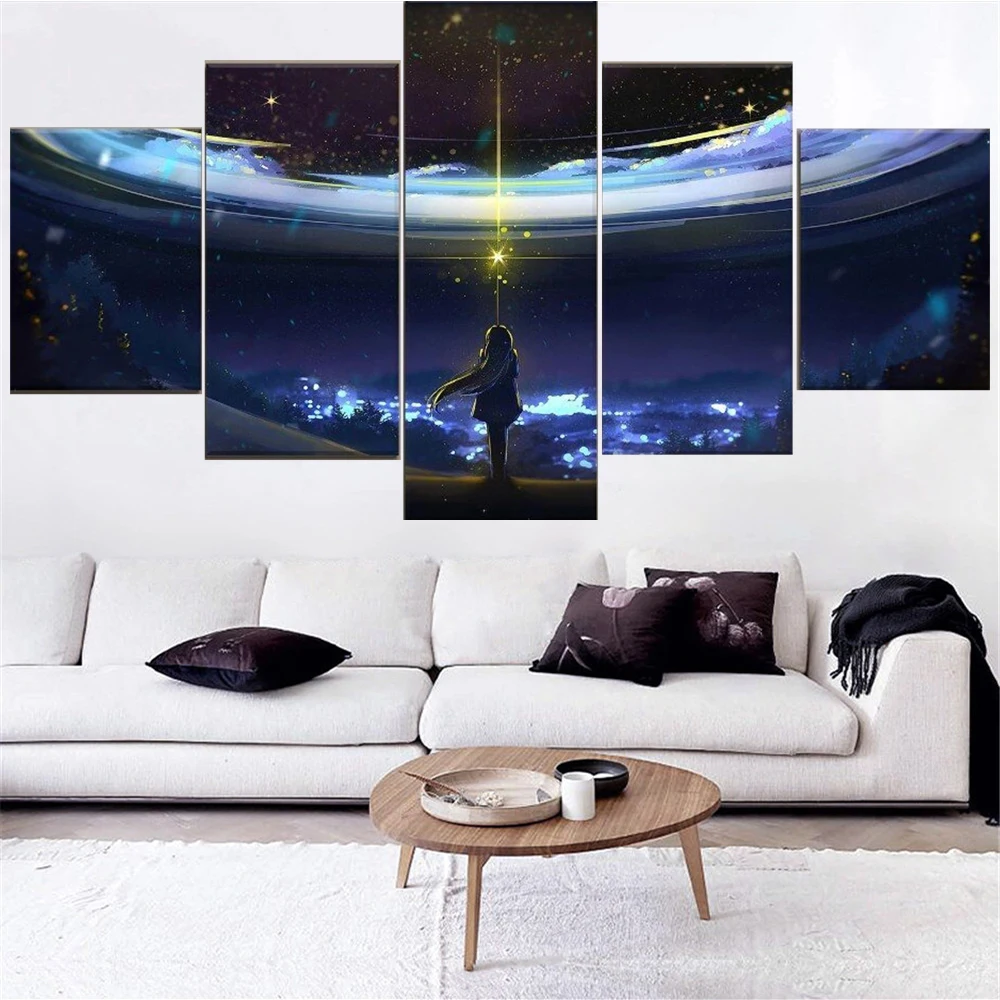 Pintura em tela para parede, 5 unidades, arte, poster inspirado em anime, decoração de casa para sala de estar, quadro moderno, imagens modulares