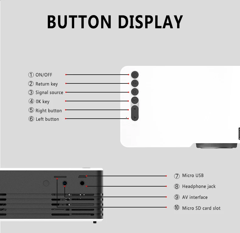 1. este mini projetor é apenas adequado para uso doméstico, não é adequado para escritório ou uso de ensino