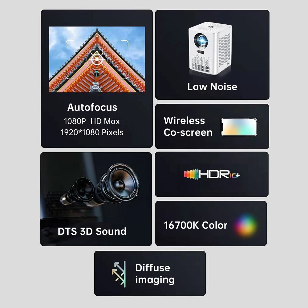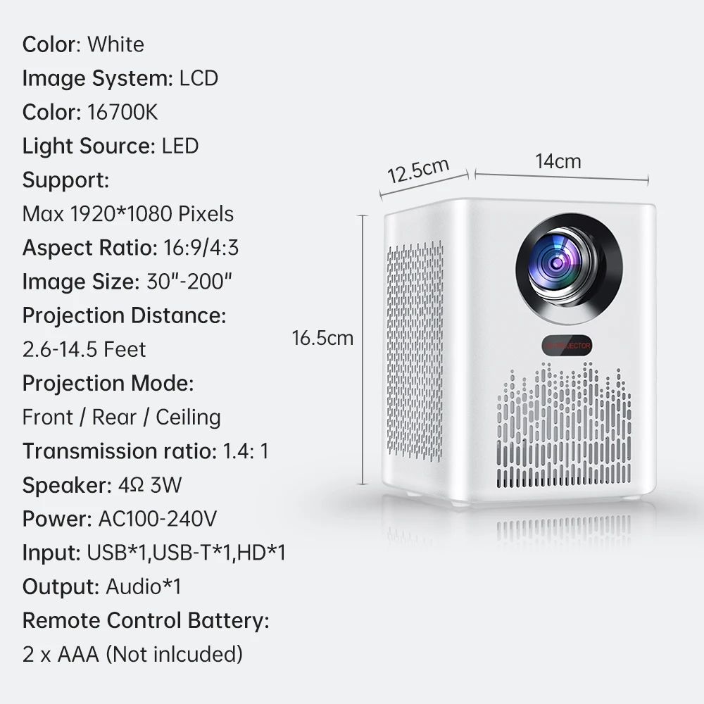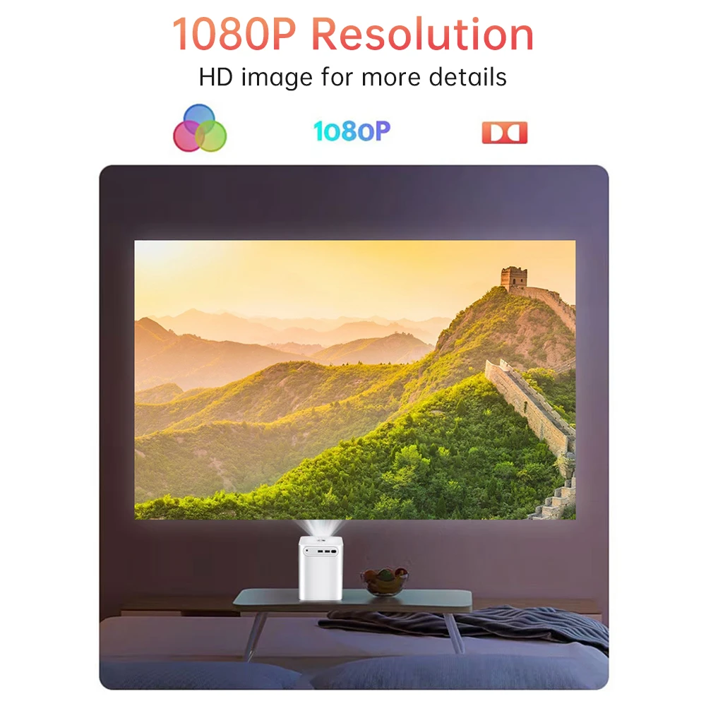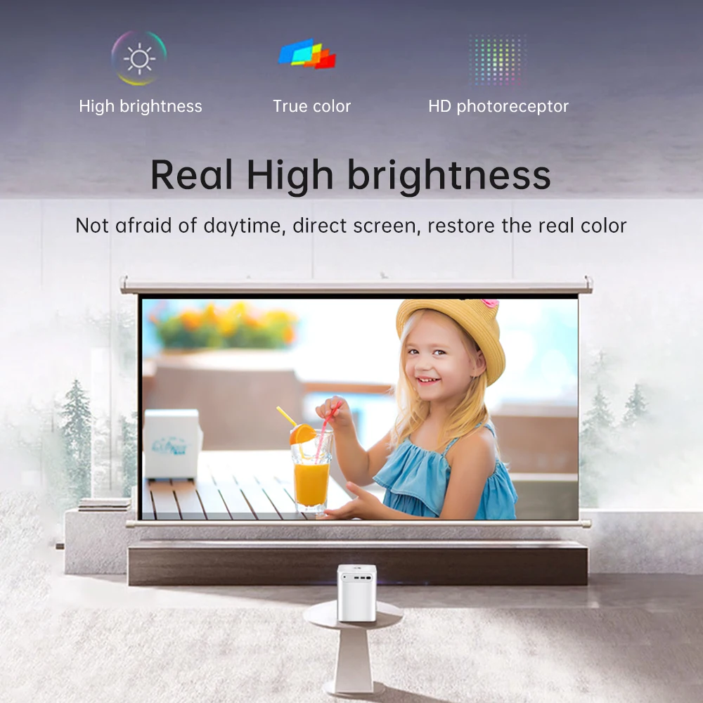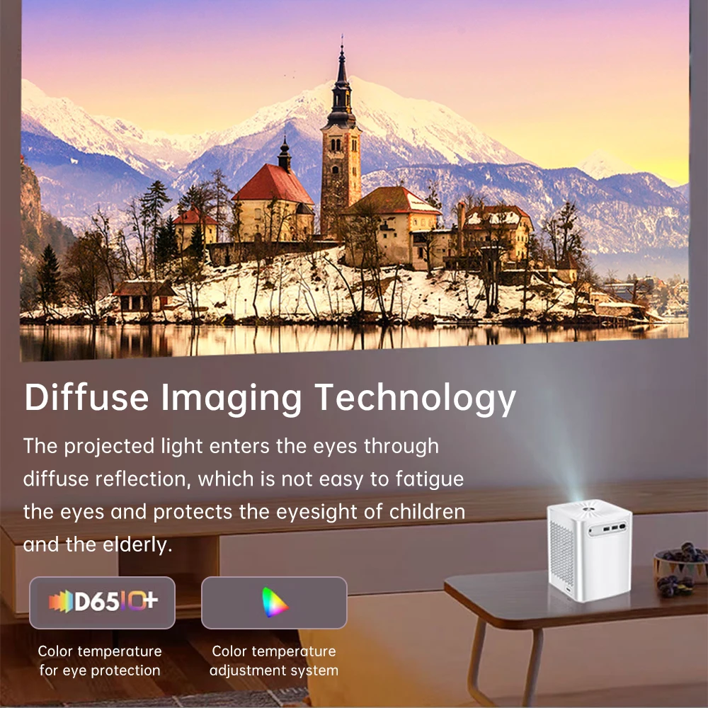 Desempenho proeminente do ?: Reprodução do apoio 1080P HD, tecnologia do LCD com temperatura de cor da projeção D65. A luz projetada entra nos olhos através de reflexão difusa, o que não é fácil de fadiga dos olhos e protege a visão de crianças e idosos.