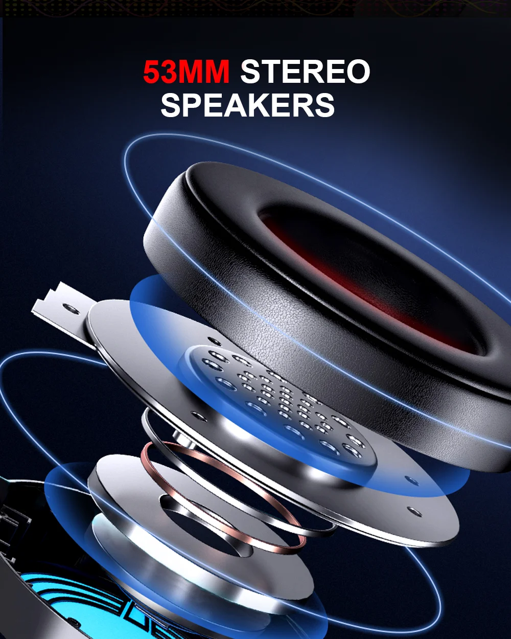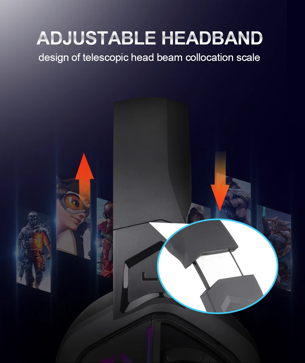 Fone de ouvido estereofônico do jogo com áudio do jogo da luz do diodo emissor de luz dedicado 53mm os drivers do orador são projetados para produzir o soundscape detalhado, equilibrado com distorção ultra-baixa para seus jogos, música, filmes, e mais