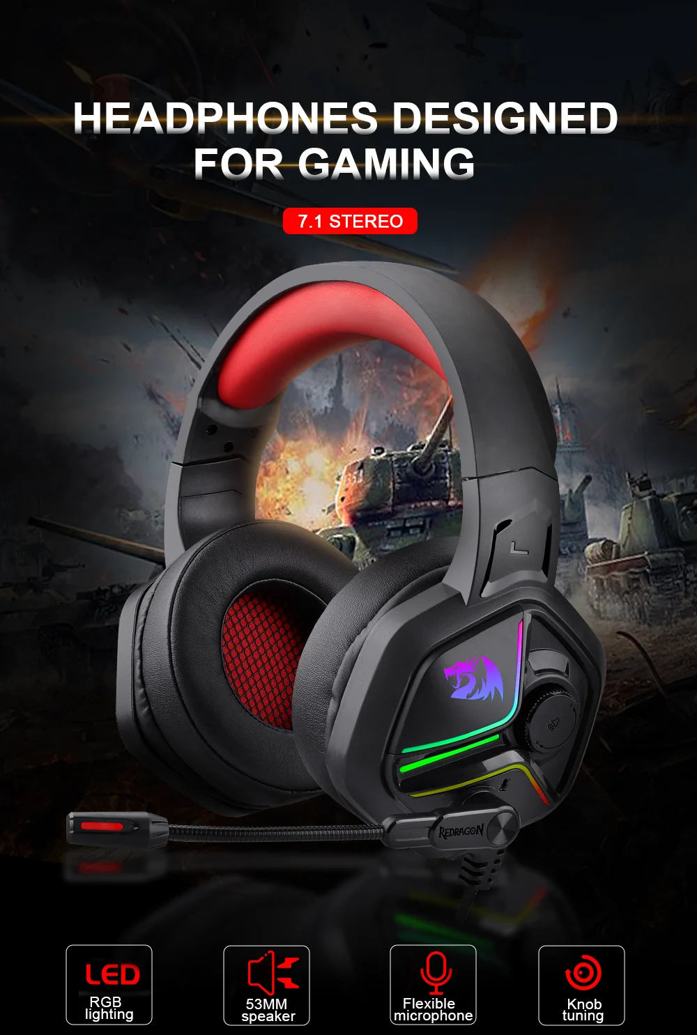 Redragon ajax h230 rgb gaming headphone, 3.5mm surround sound computador fone de ouvido microfone para ps4 switch xbox-um