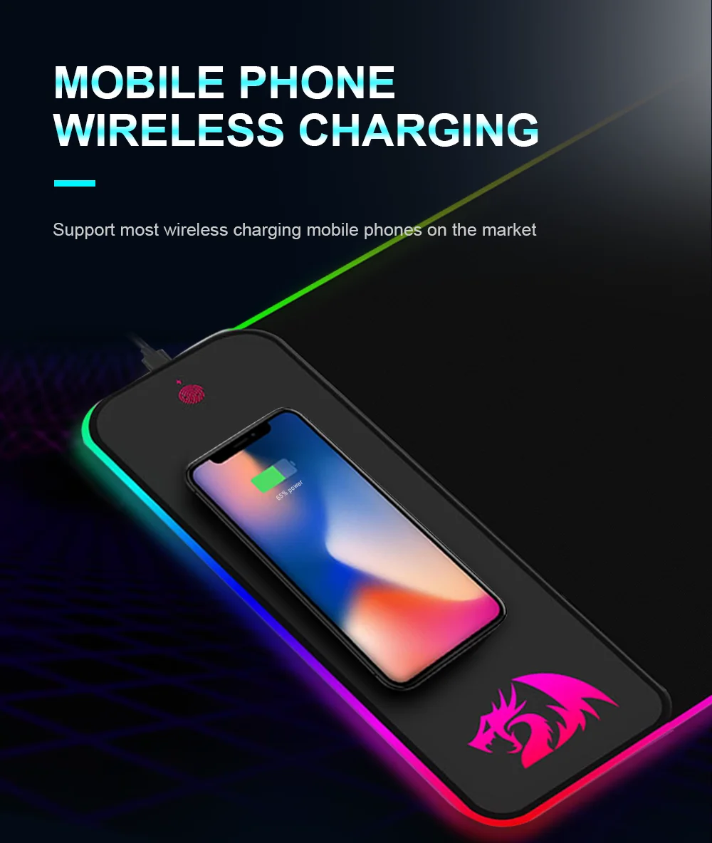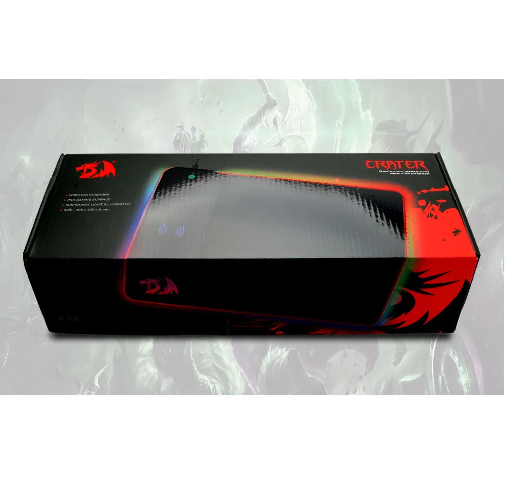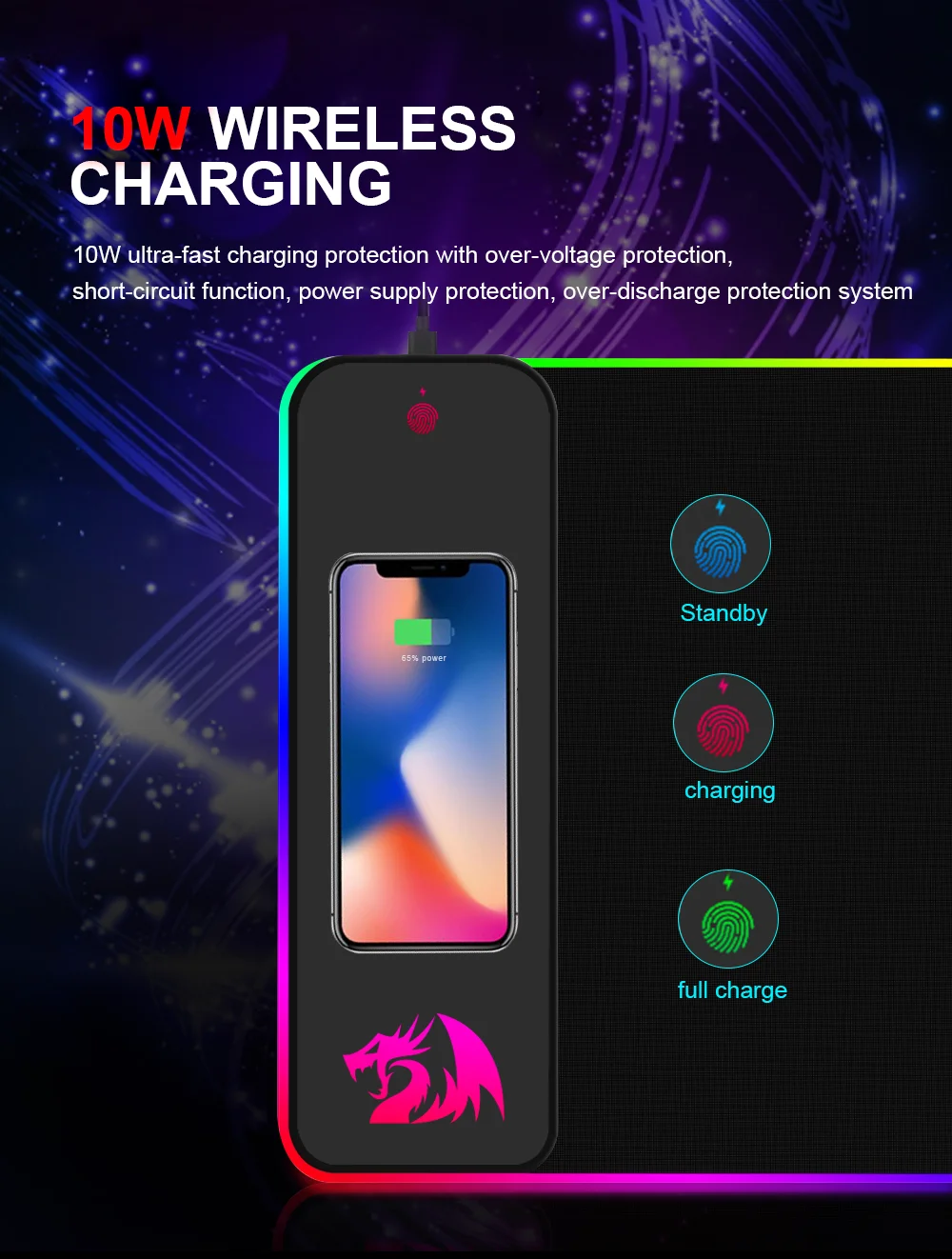 Redragon cratera p028 gaming mouse pad 10w sem fio de carregamento rgb backlight borracha base 400*300*9mm jogo bloqueio borda tapete mousepad