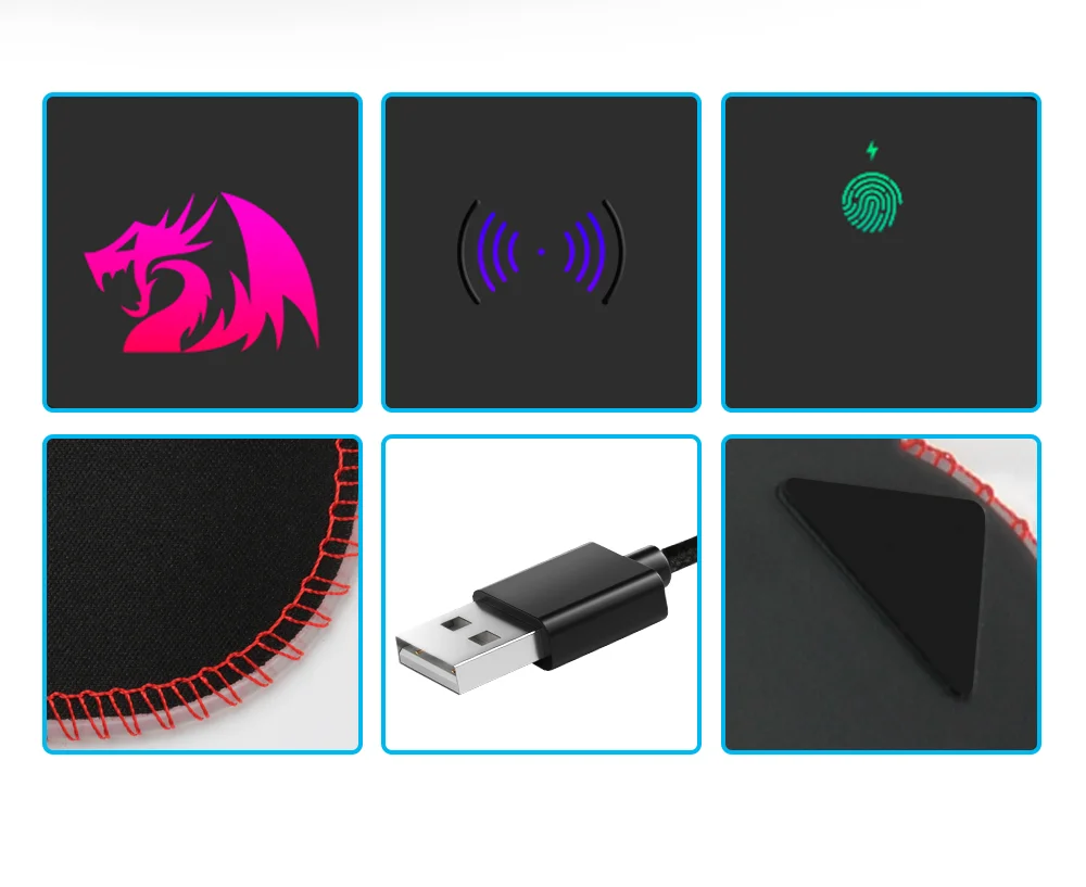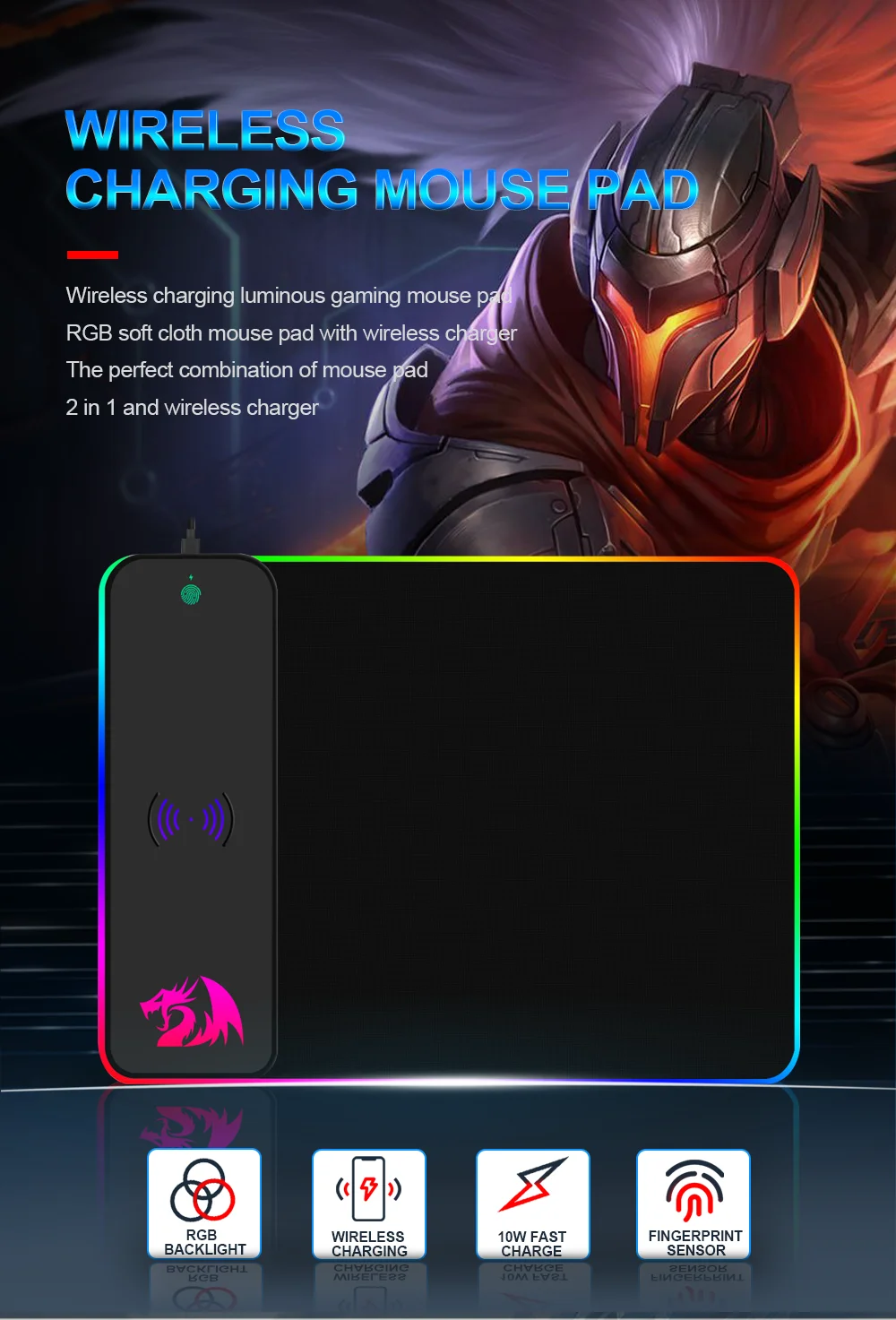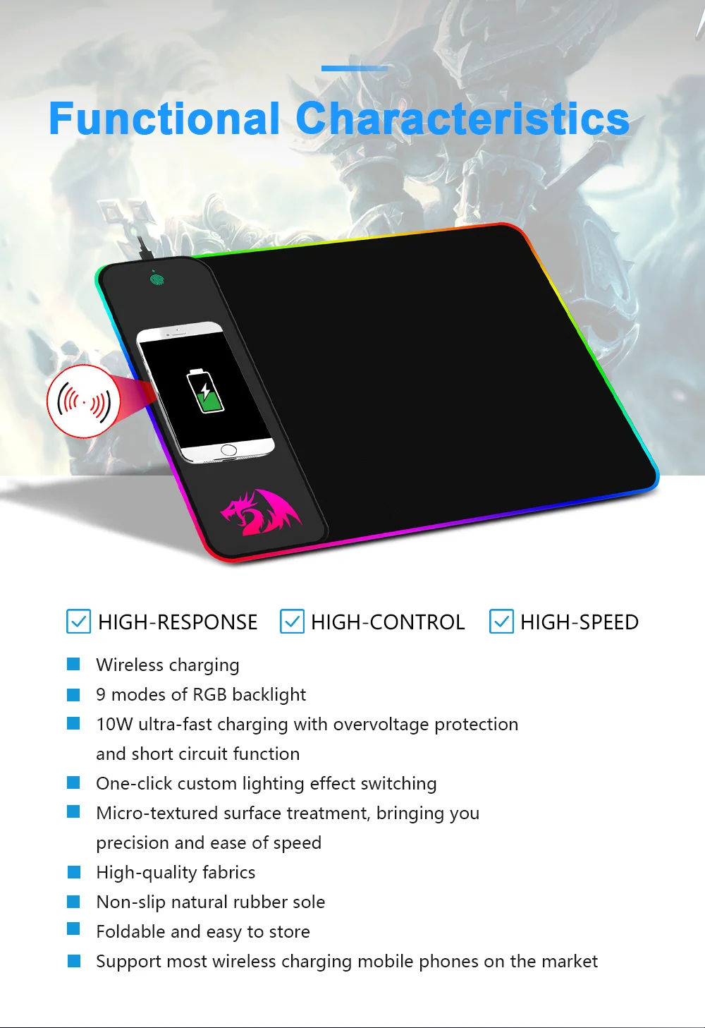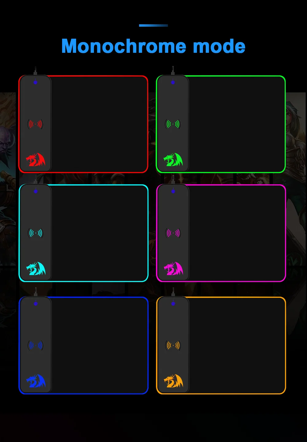 Redragon cratera p028 gaming mouse pad 10w sem fio de carregamento rgb backlight borracha base 400*300*9mm jogo bloqueio borda tapete mousepad