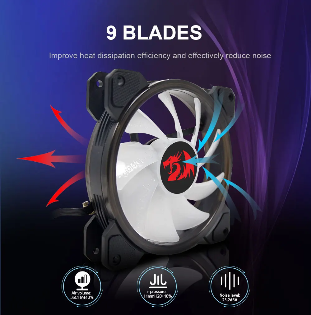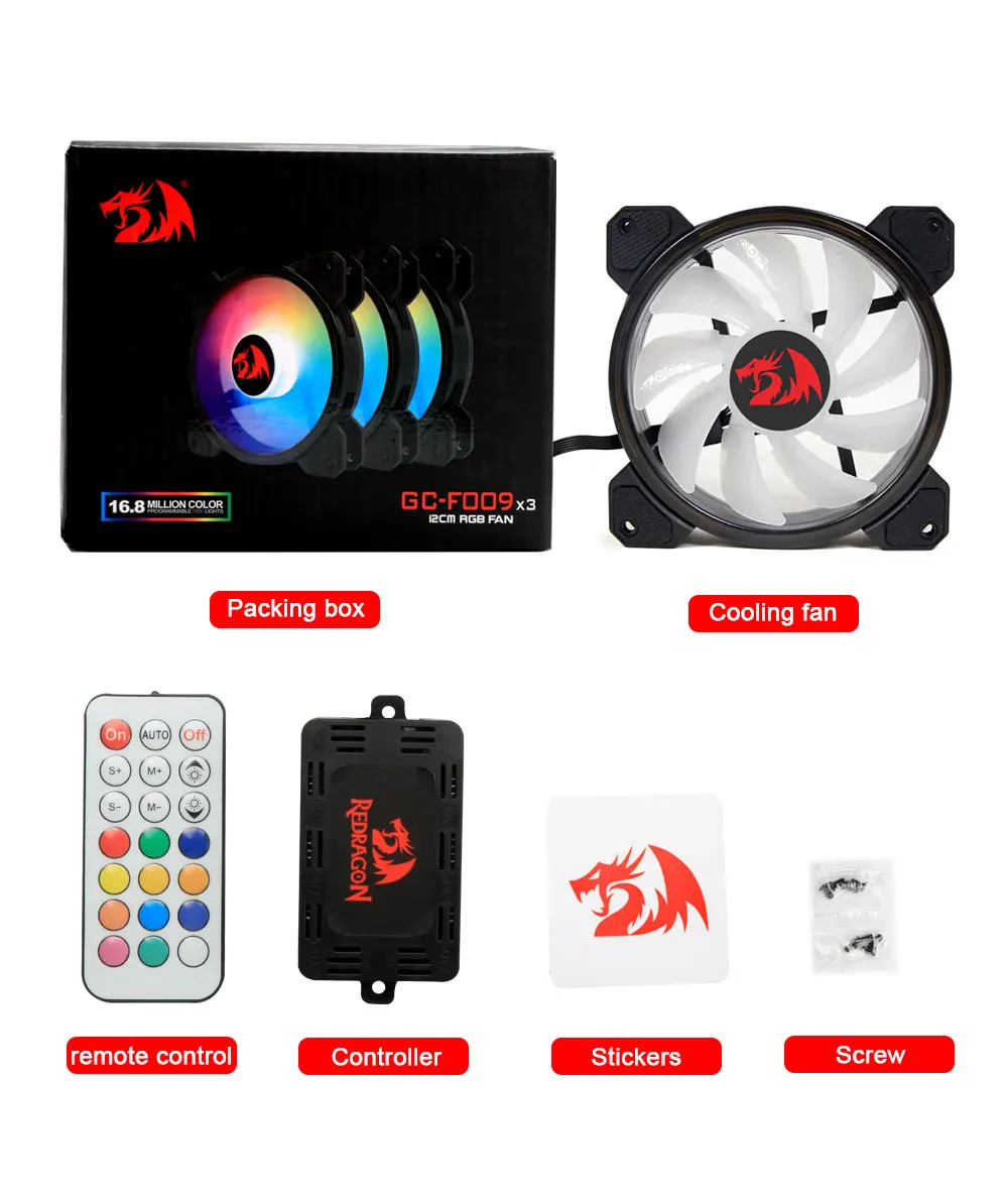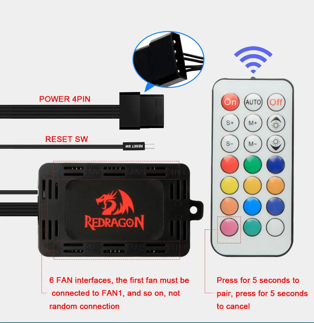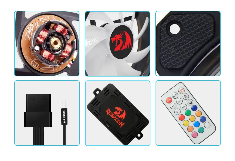 Redragon-ventilador para computador, 120mm, cores rgb, silencioso, cpu, 6 pinos, led, cooler